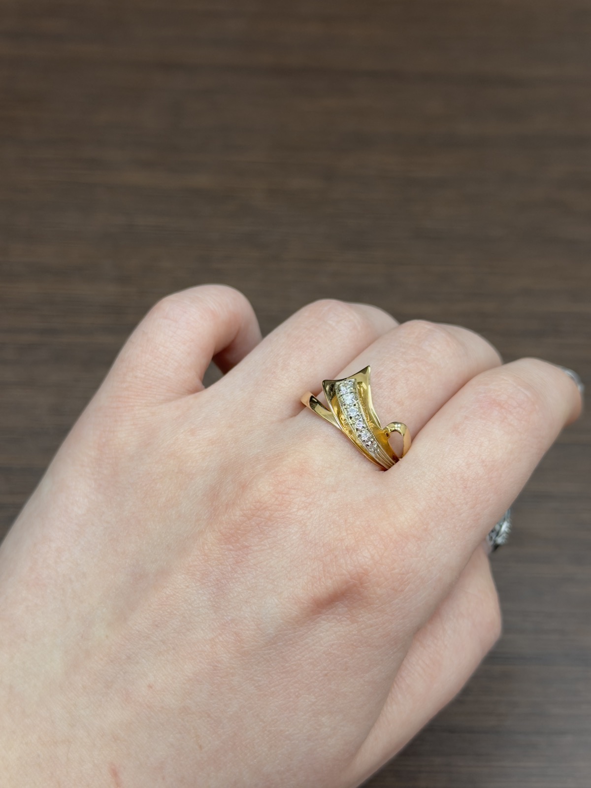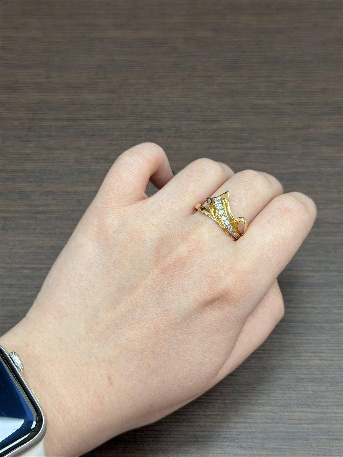 Золотое кольцо в красном с белым цвете с цирконом 01-200498363