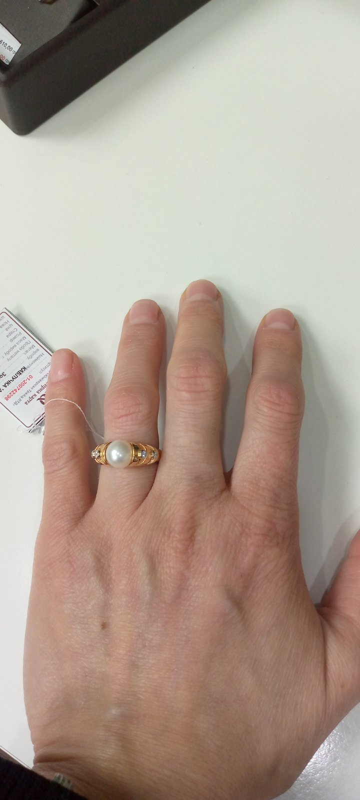 Золотое кольцо с белыми бриллиантами и жемчугом 01-200742298