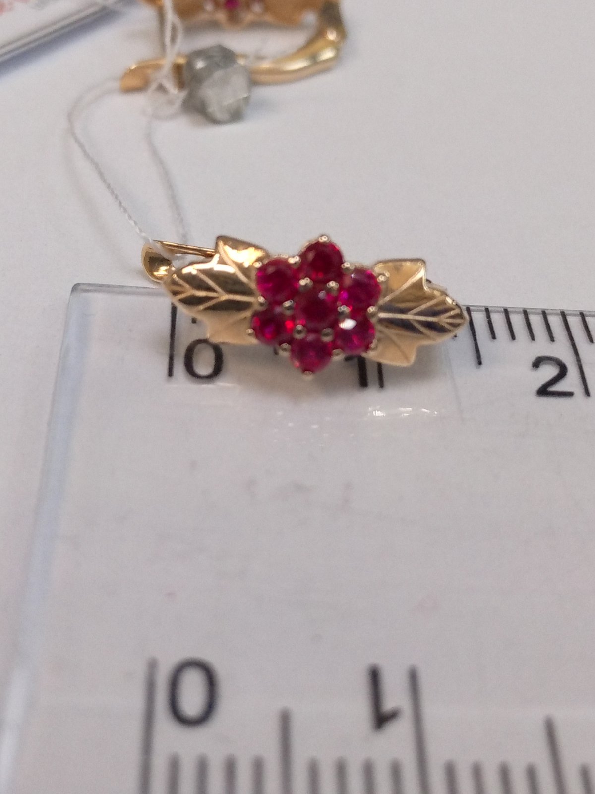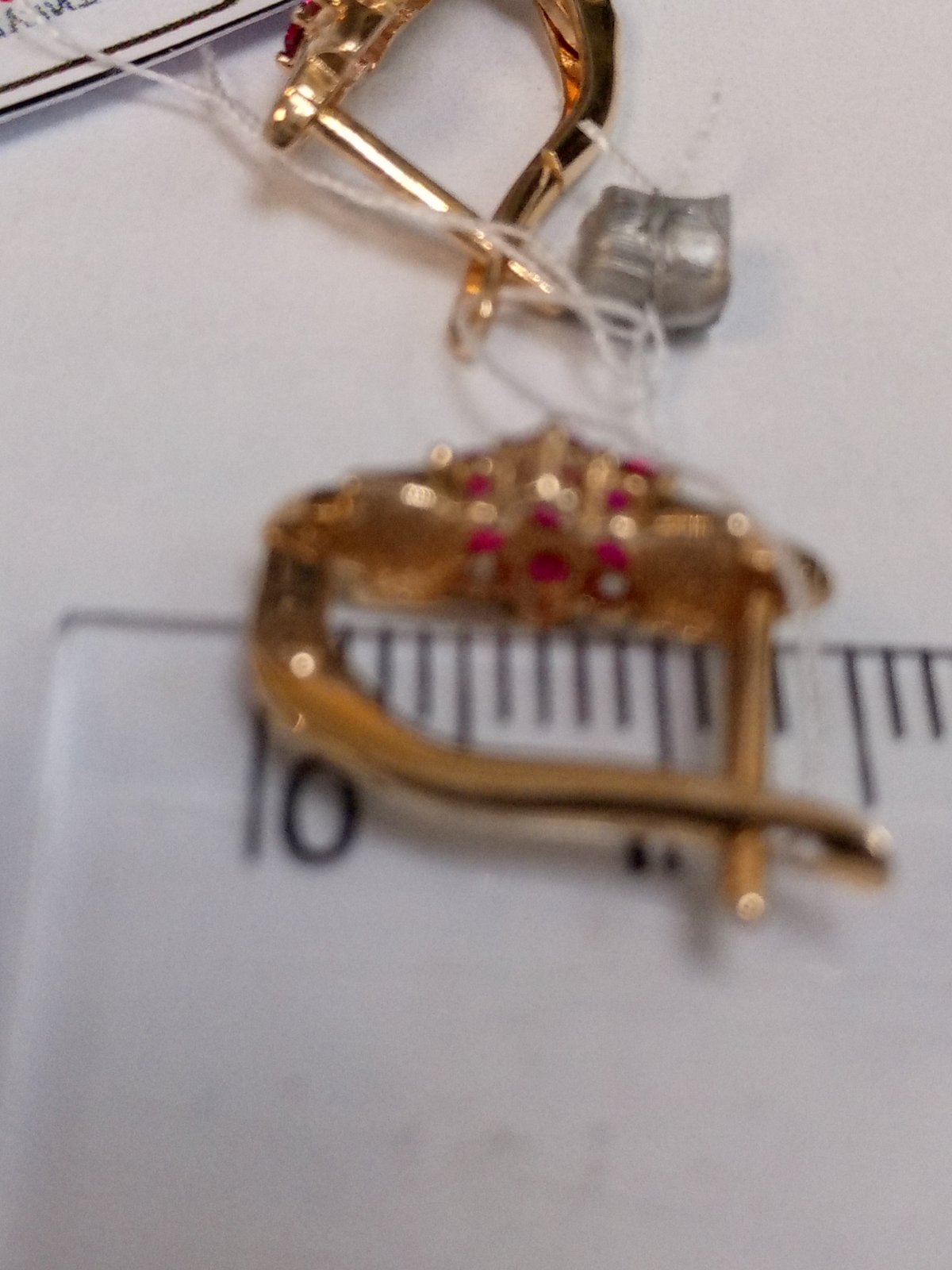Золотые серьги красного цвета с цирконом 01-200345932