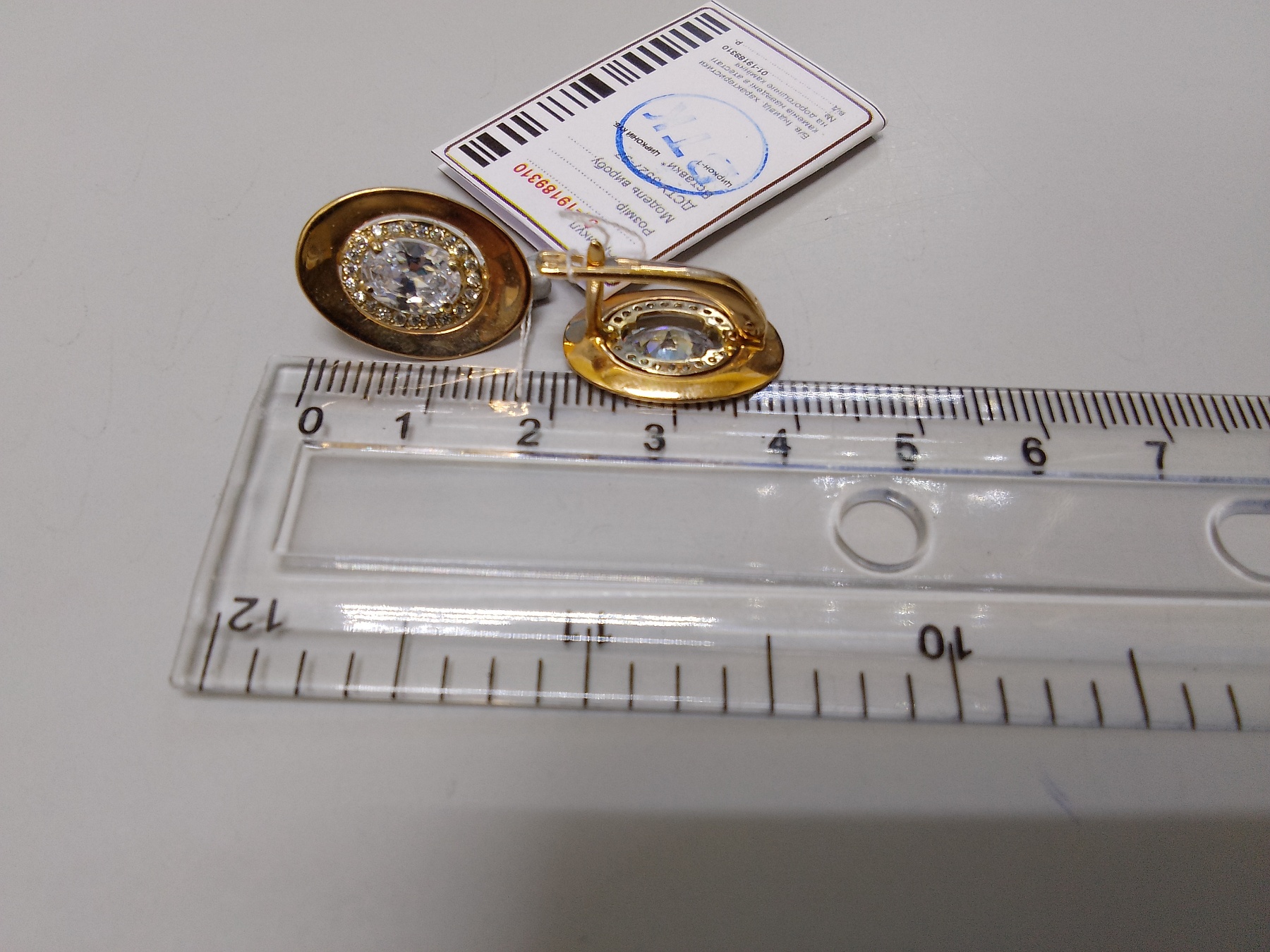 Золотые серьги красного с белым цвета с цирконом 01-19189310
