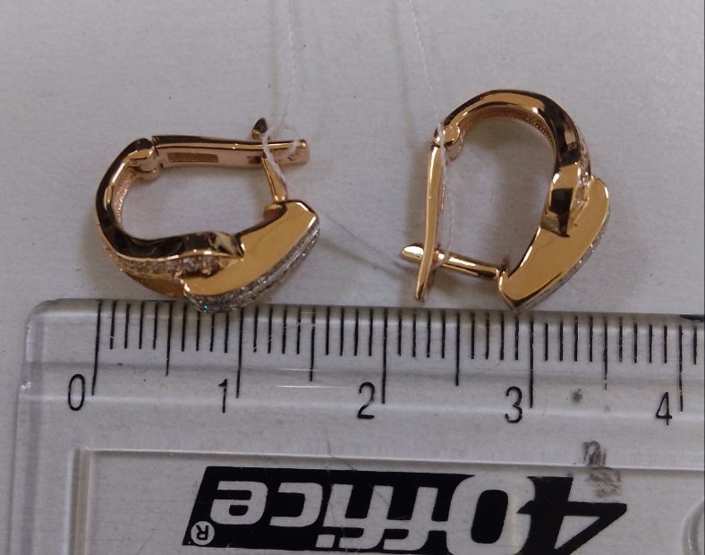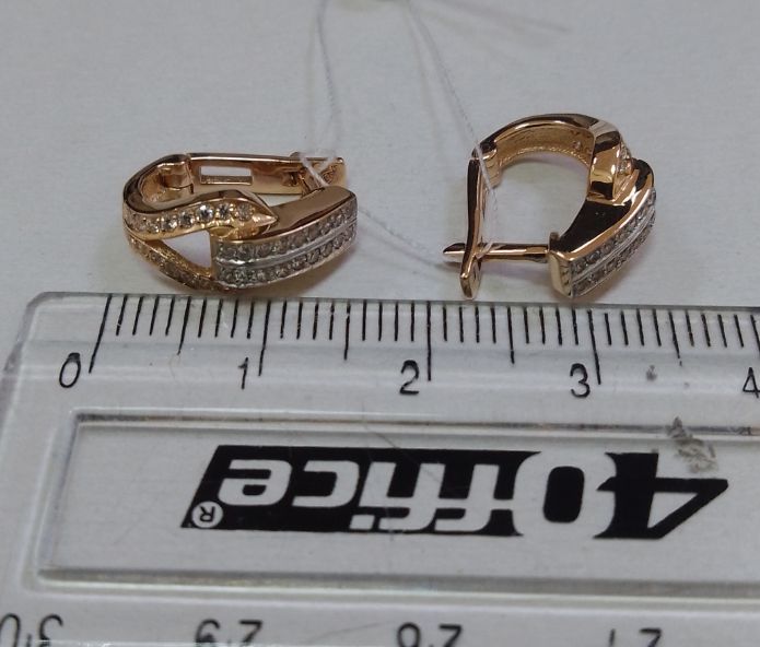 Золотые серьги красного с белым цвета с цирконом 01-200781941