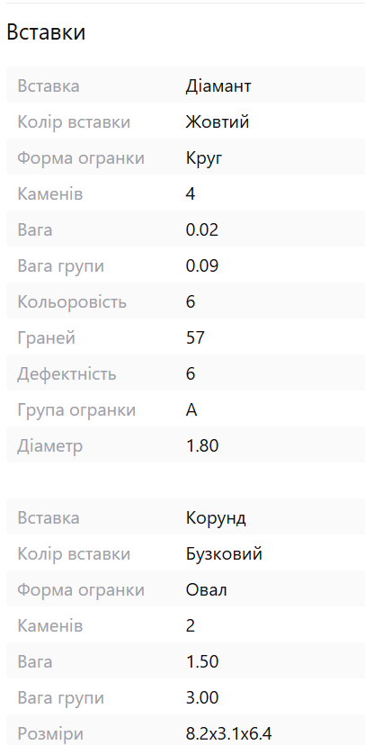 - Вставки Желтые бриллианты, Сиреневые корунды