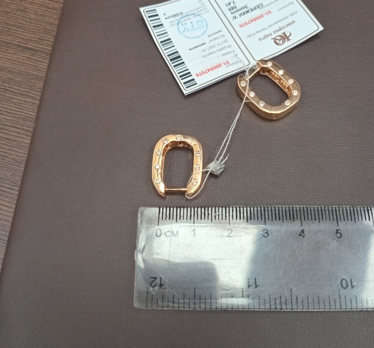 Золотые серьги в красном цвете с цирконом 01-200547076
