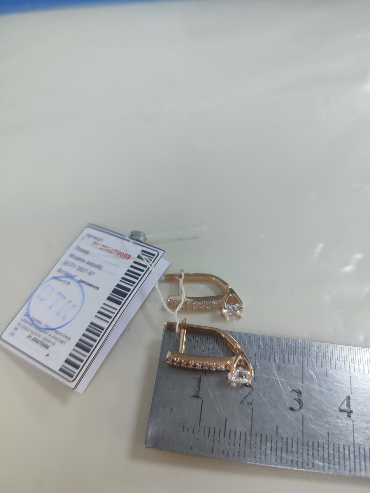 Золотые серьги с цирконом 01-200270099
