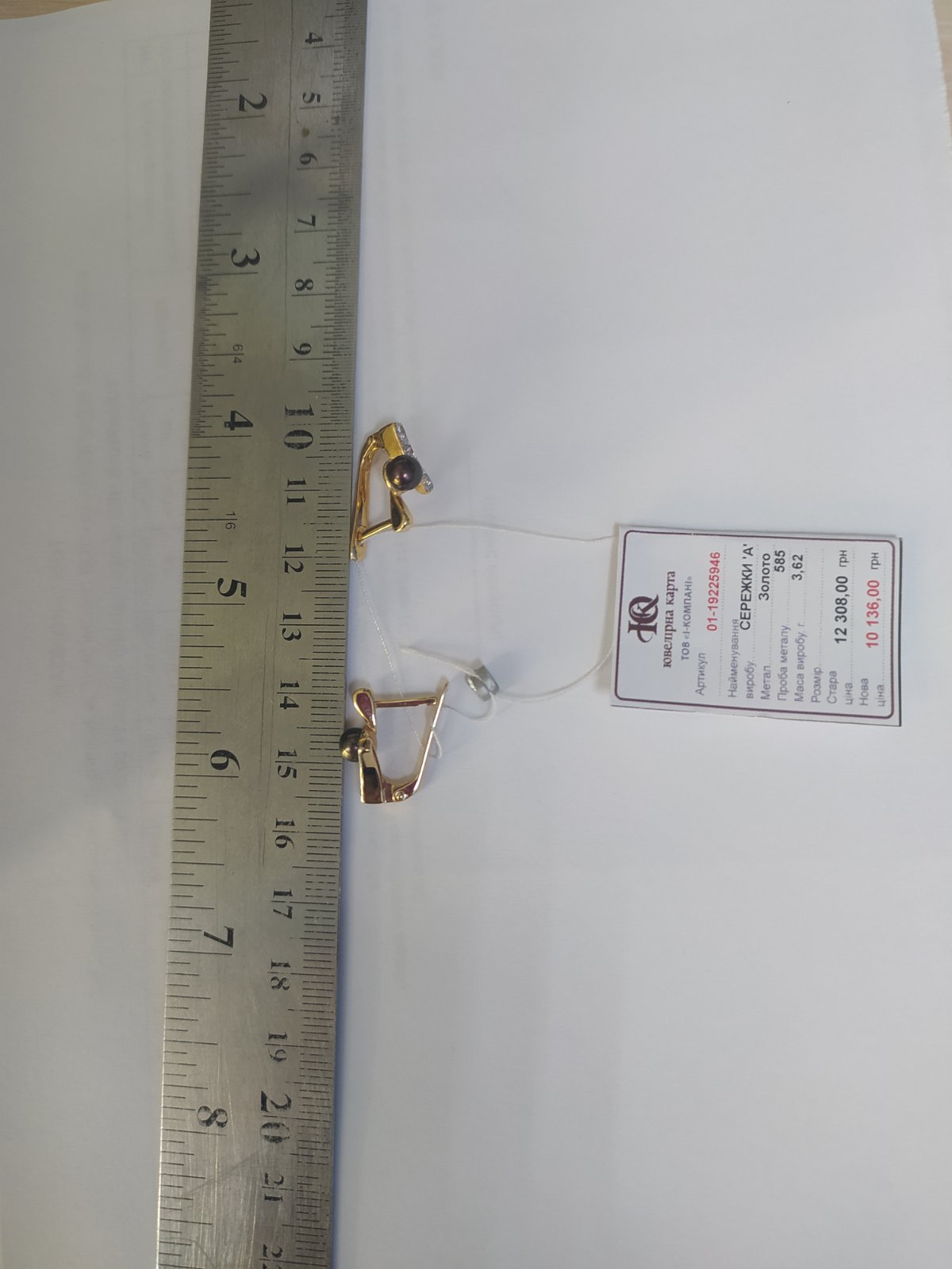 Золотые серьги с жемчугом и цирконом 01-19225946
