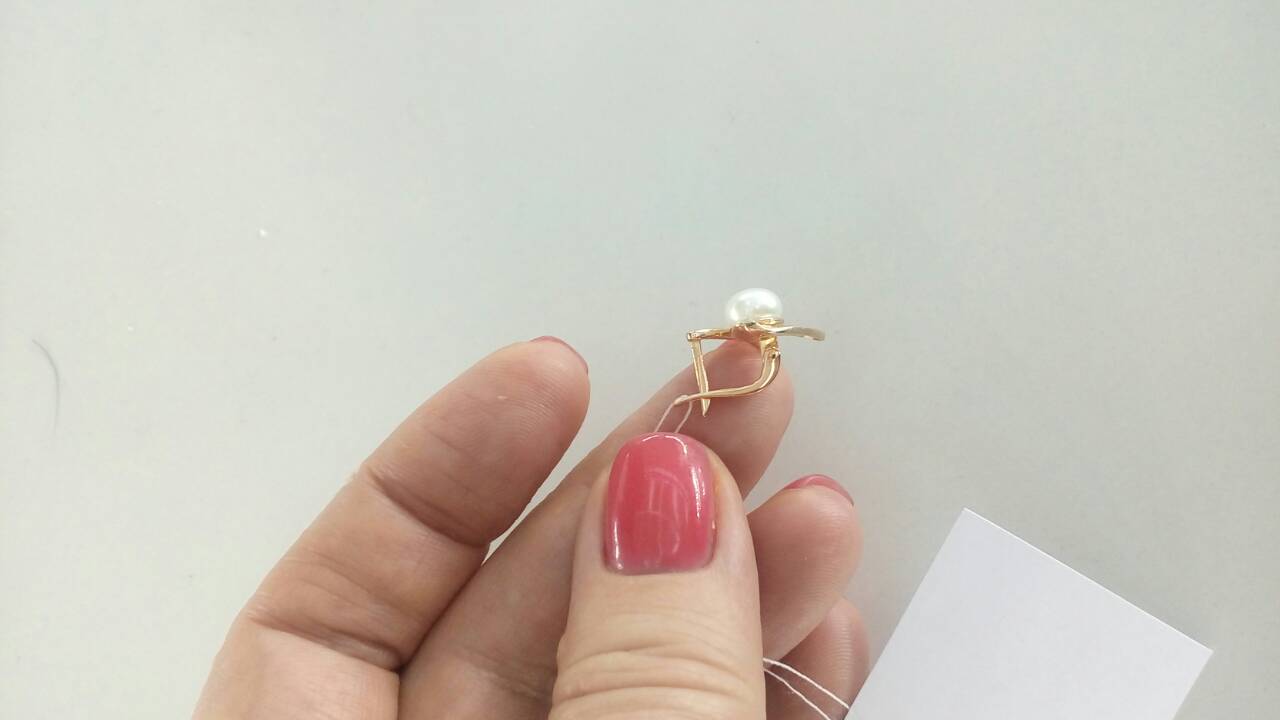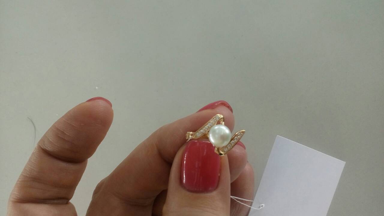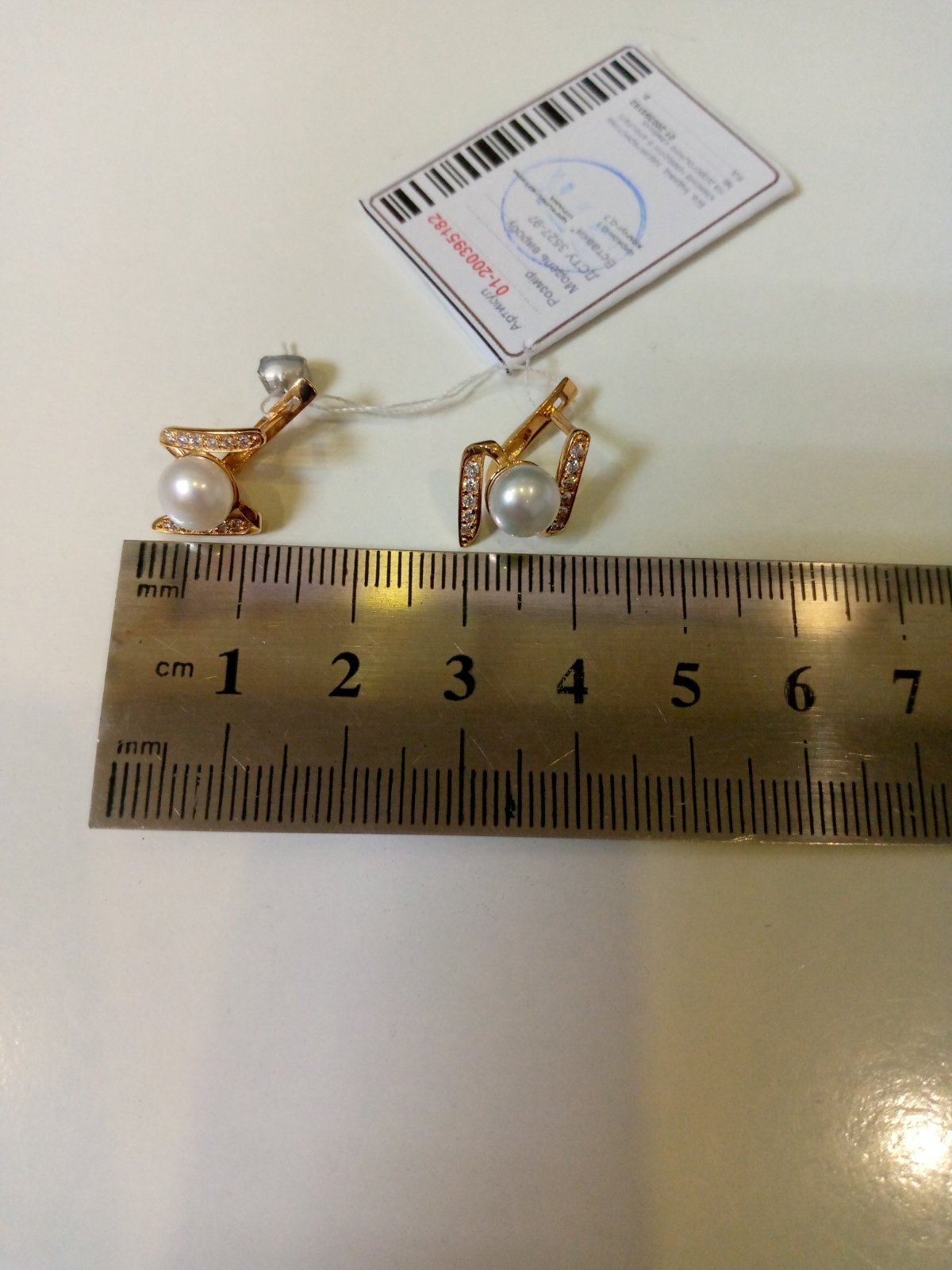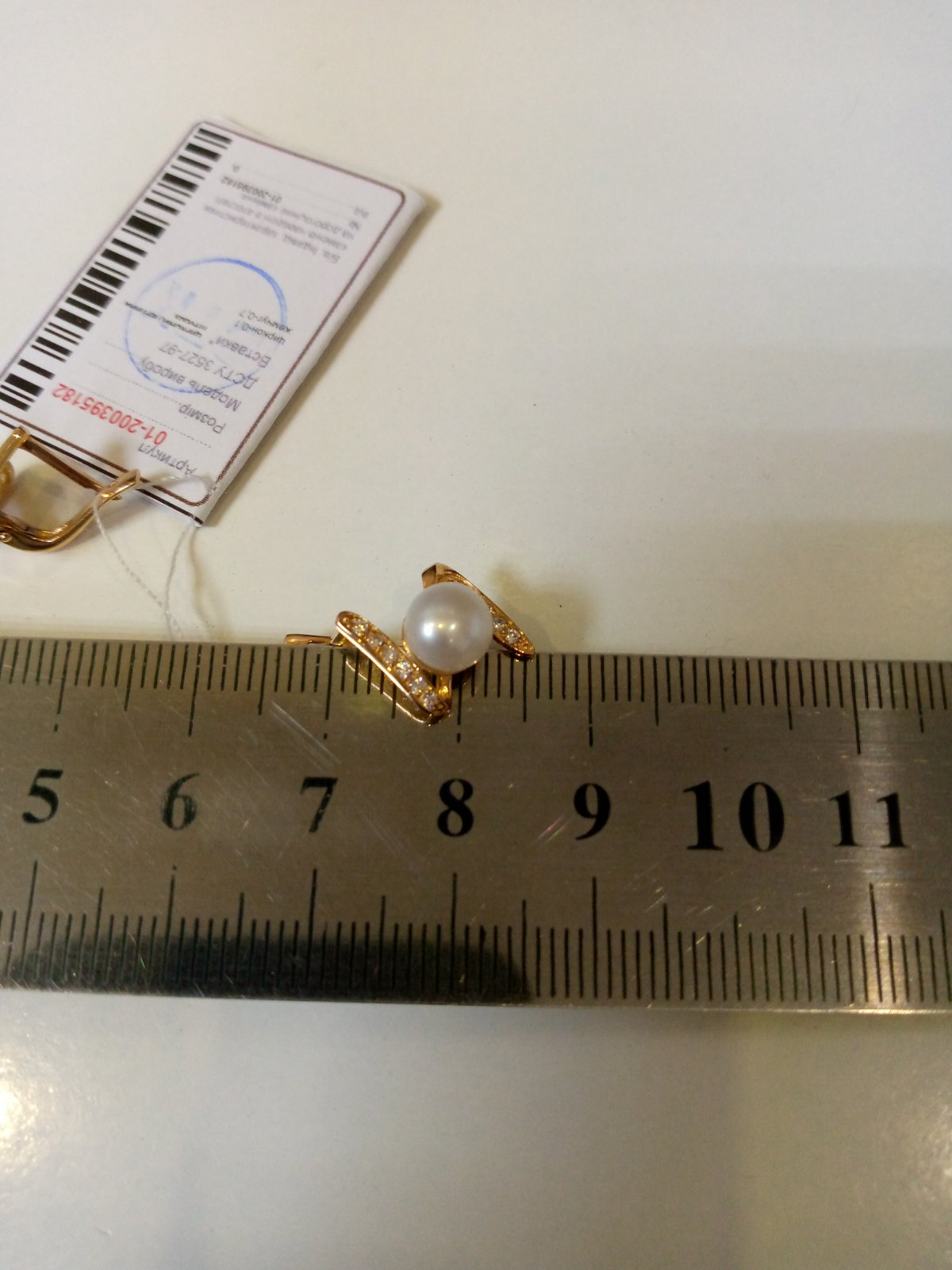 Золотые серьги с жемчугом и цирконом 01-200395182