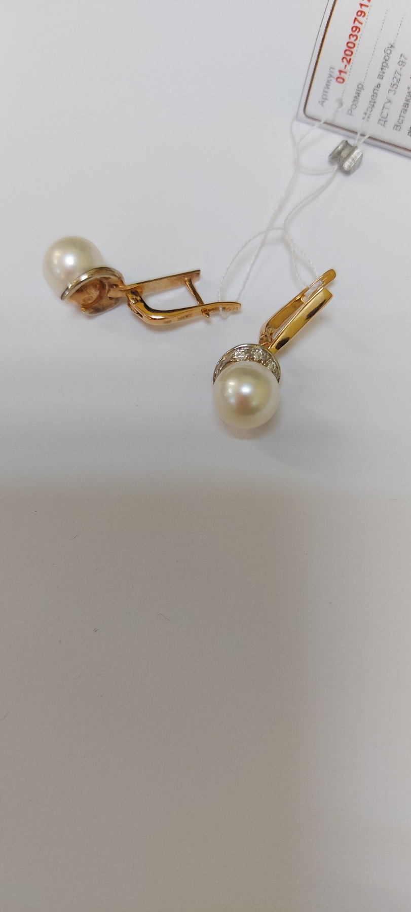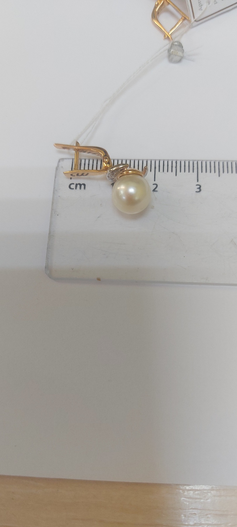Золотые серьги с желтыми бриллиантами и жемчугом «Шар» 01-200397912