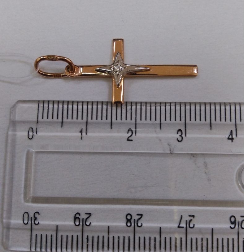 Золотой крестик в красном с белым цвете с белым бриллиантом 01-200469964