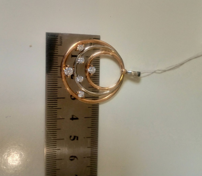 Золотой кулон красного с белым цвета с цирконом «Круги» 01-200218147