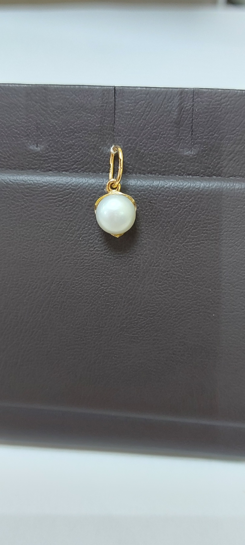 Золотой кулон в красном цвете с жемчугом 01-200322243