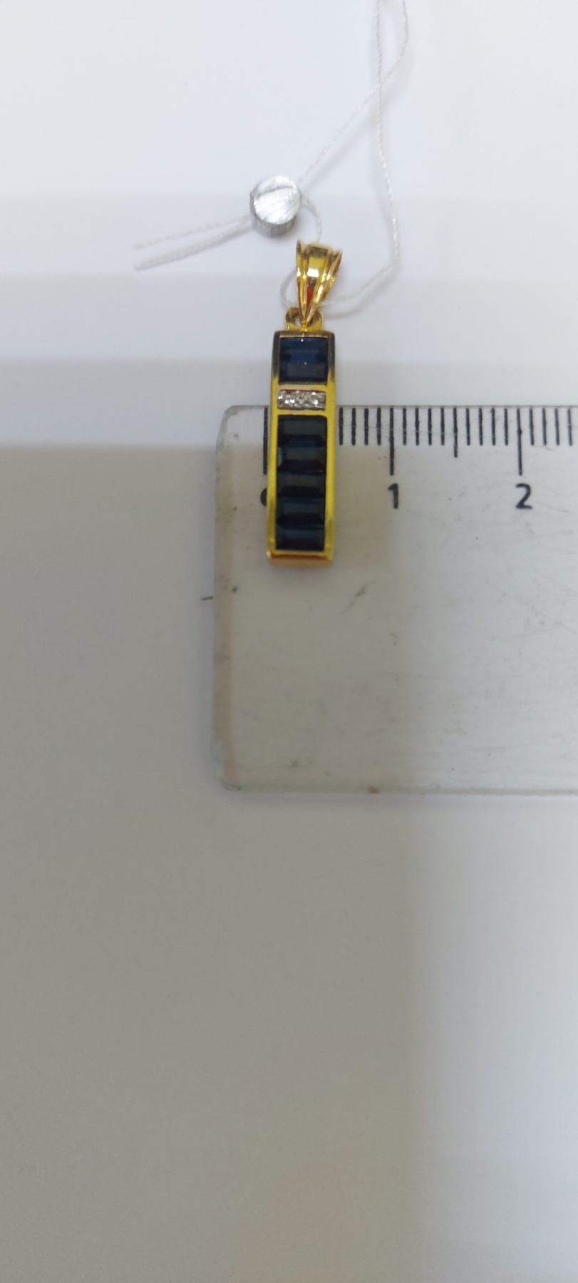 Золотой кулон желтого цвета с синими корундами и белыми бриллиантами 01-200616349