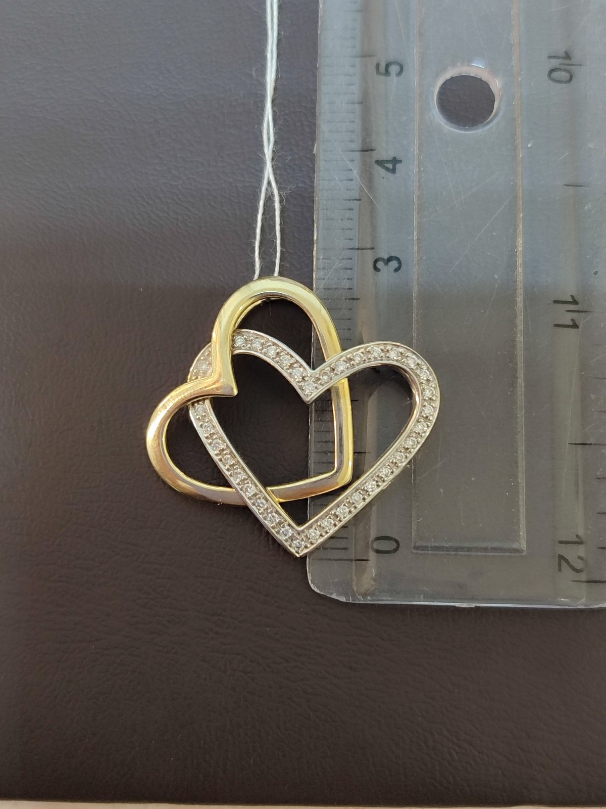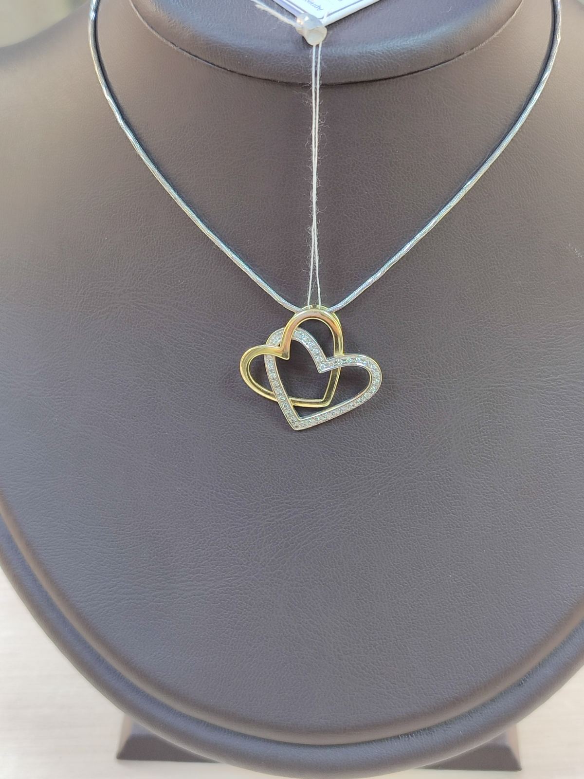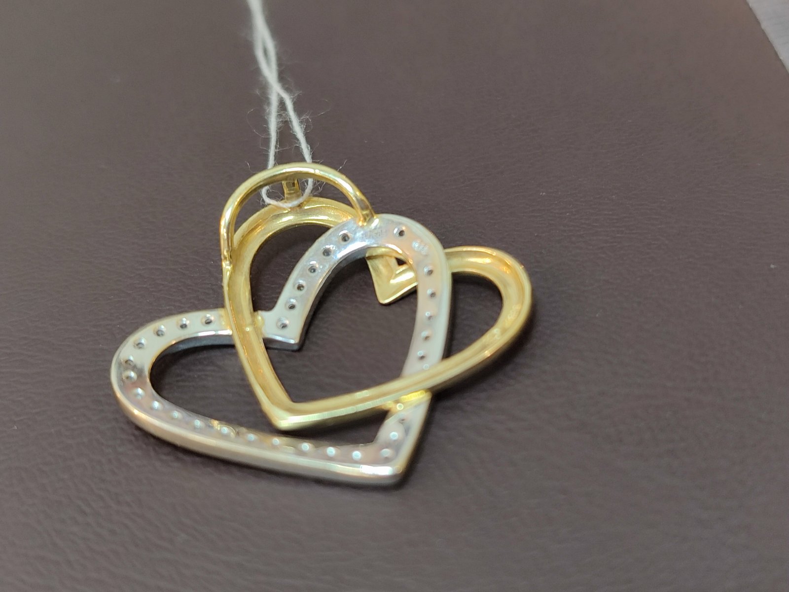 Золотой кулон желтого с белым цвета с белыми бриллиантами «Сердца» 01-200227625
