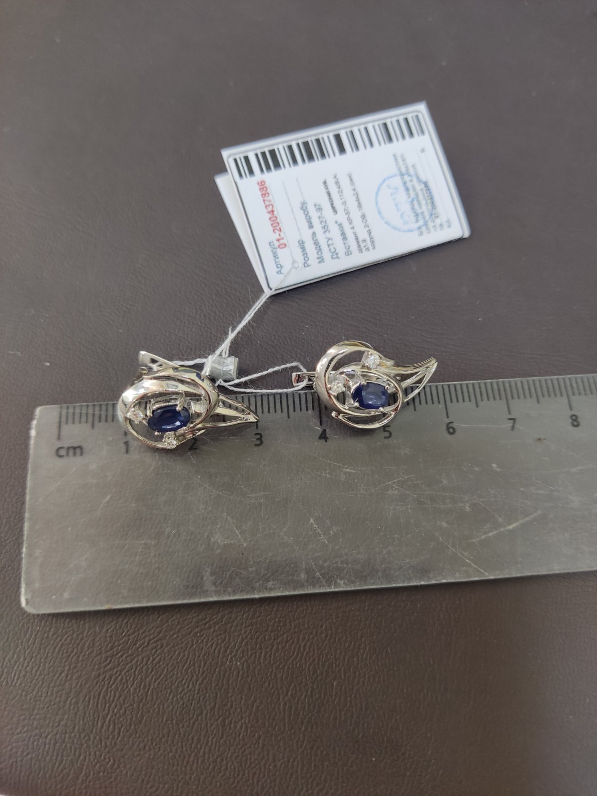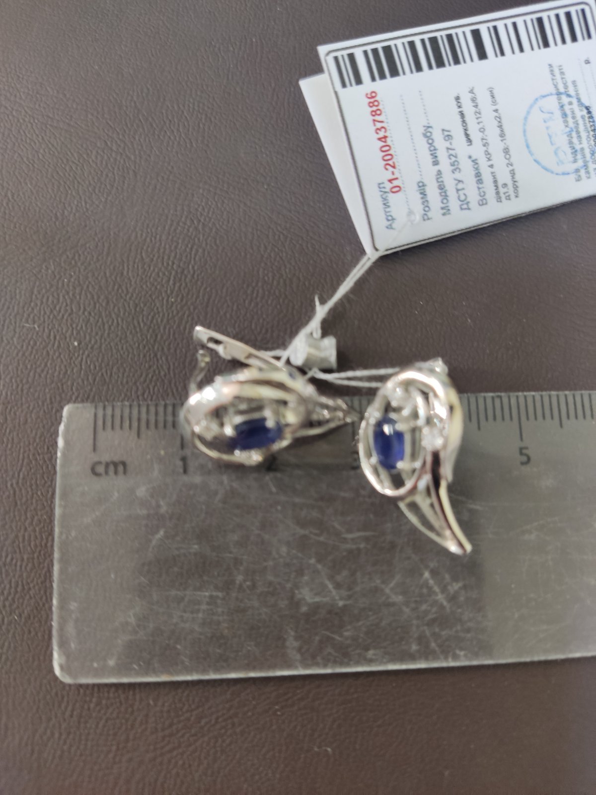 Сережки з білого золота з синіми корундами та білими діамантами 01-200437886