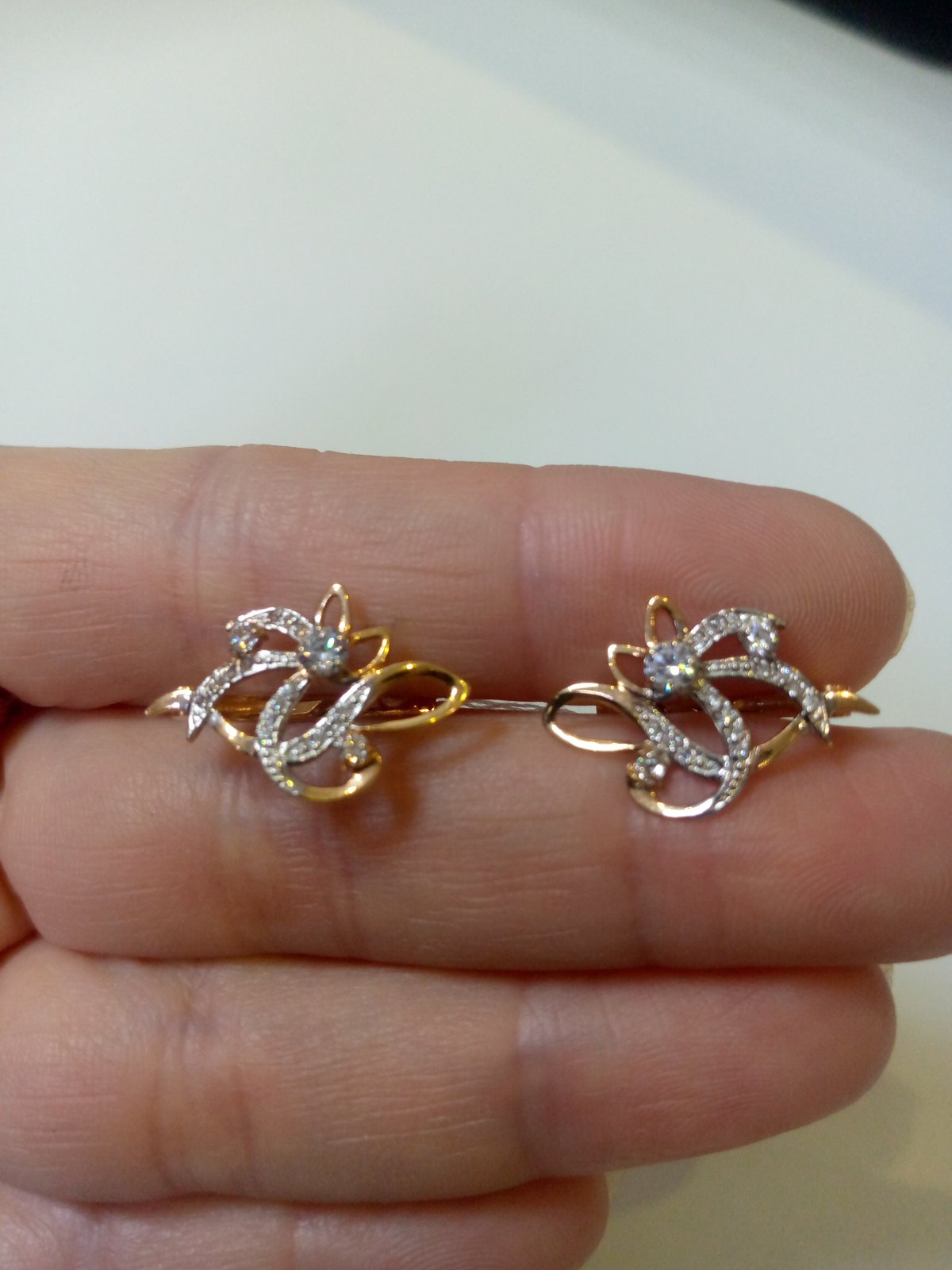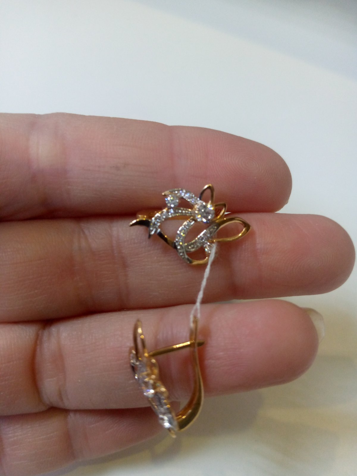 Сережки з червоного з білим золота з цирконом 01-19273228