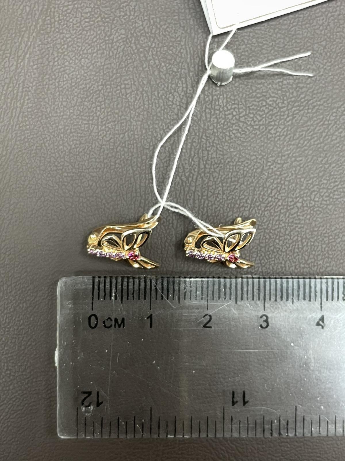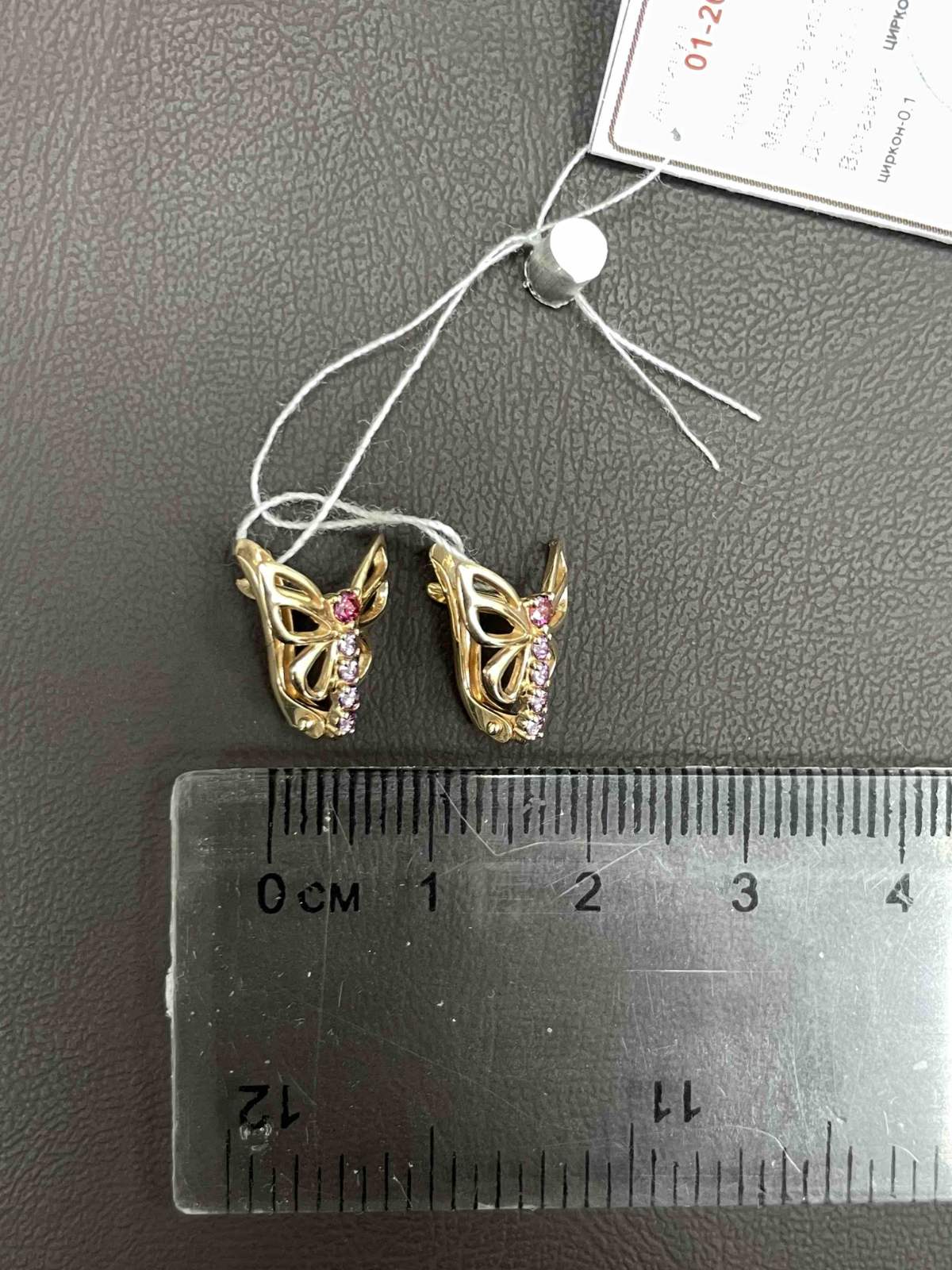 Сережки з золота у червоному кольорі з цирконом «Метелик» 01-200498304