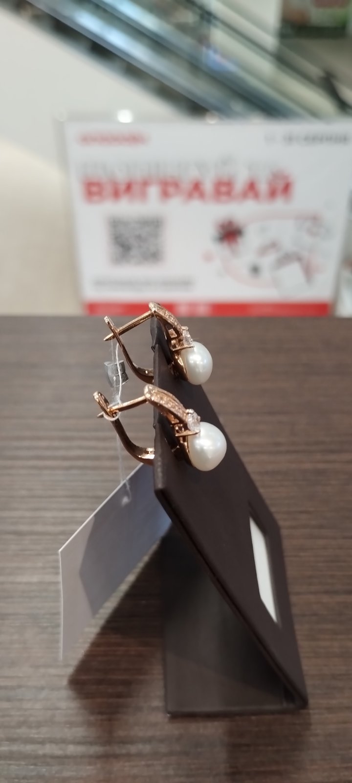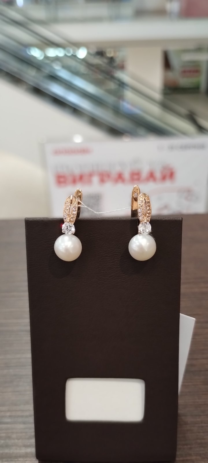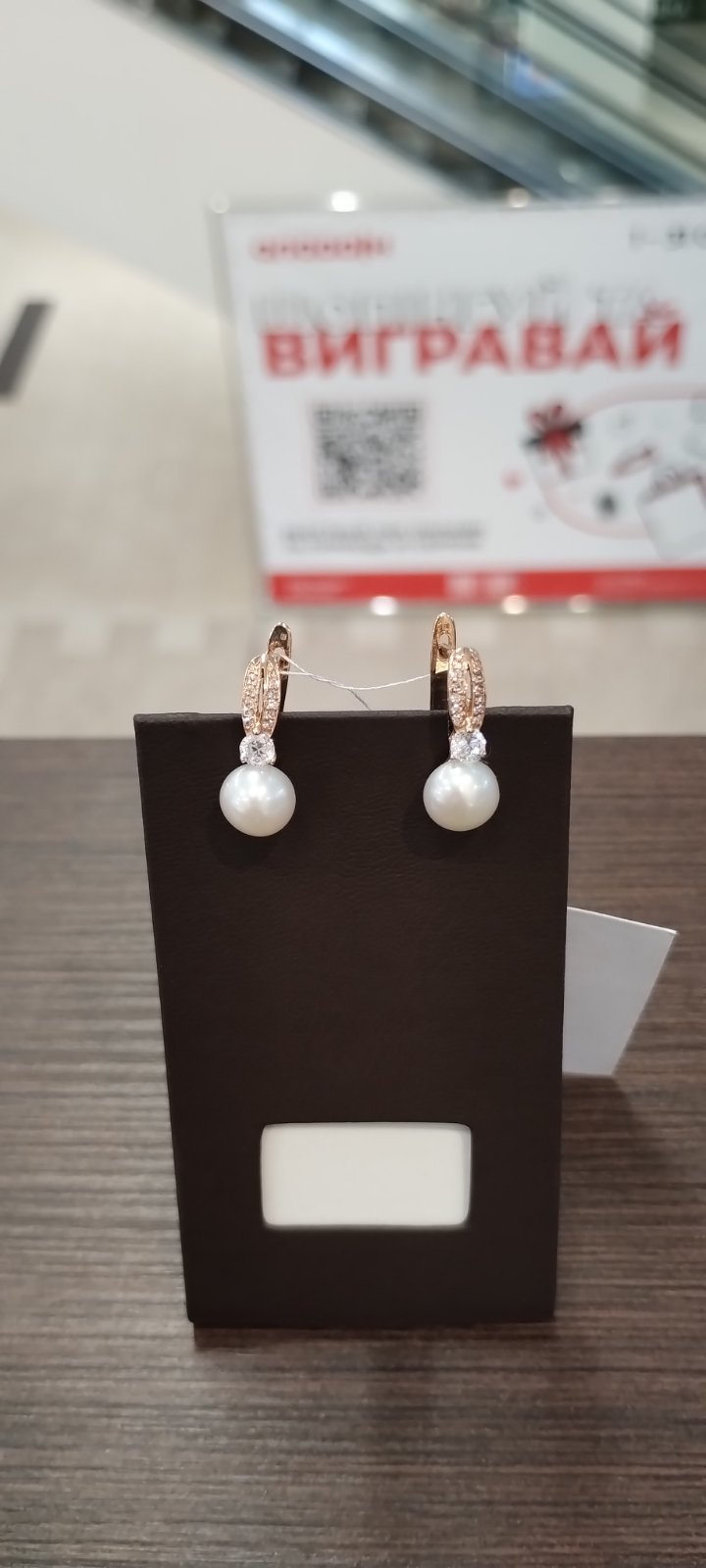 Сережки з золота у червоному кольорі з перлиною та цирконом «Куля» 01-200383567