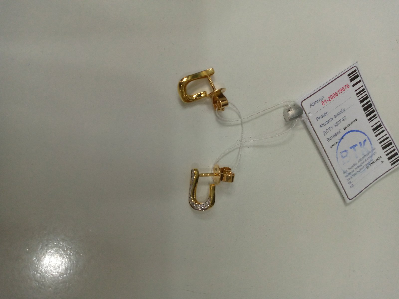 Сережки з жовтого з білим золота з цирконом 01-200619676