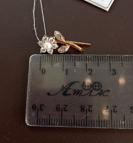 Шпилька з золота червоного з білим кольору з цирконом «Квітка» 01-200412366