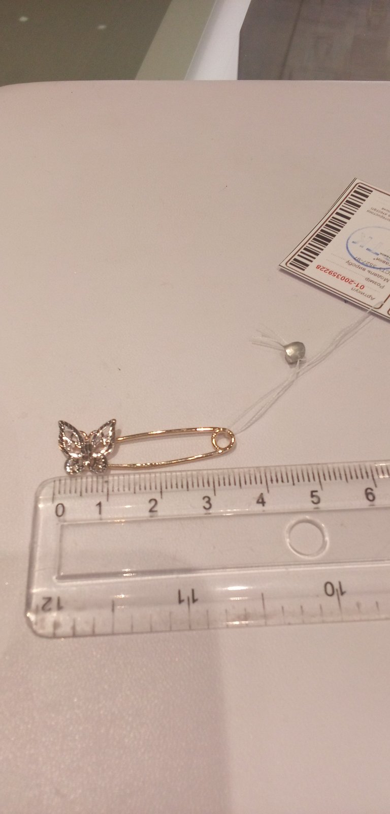 Шпилька з золота у червоному з білим кольорі «Метелик» 01-200359228