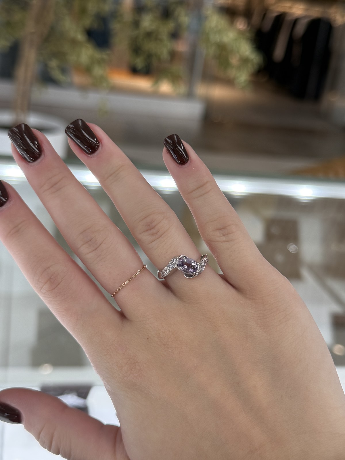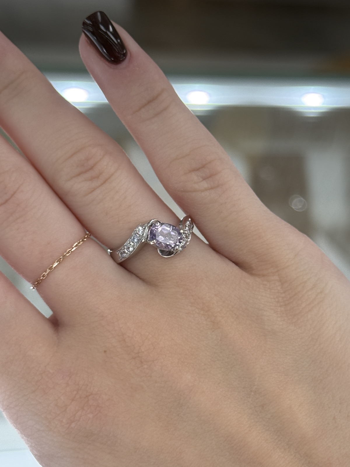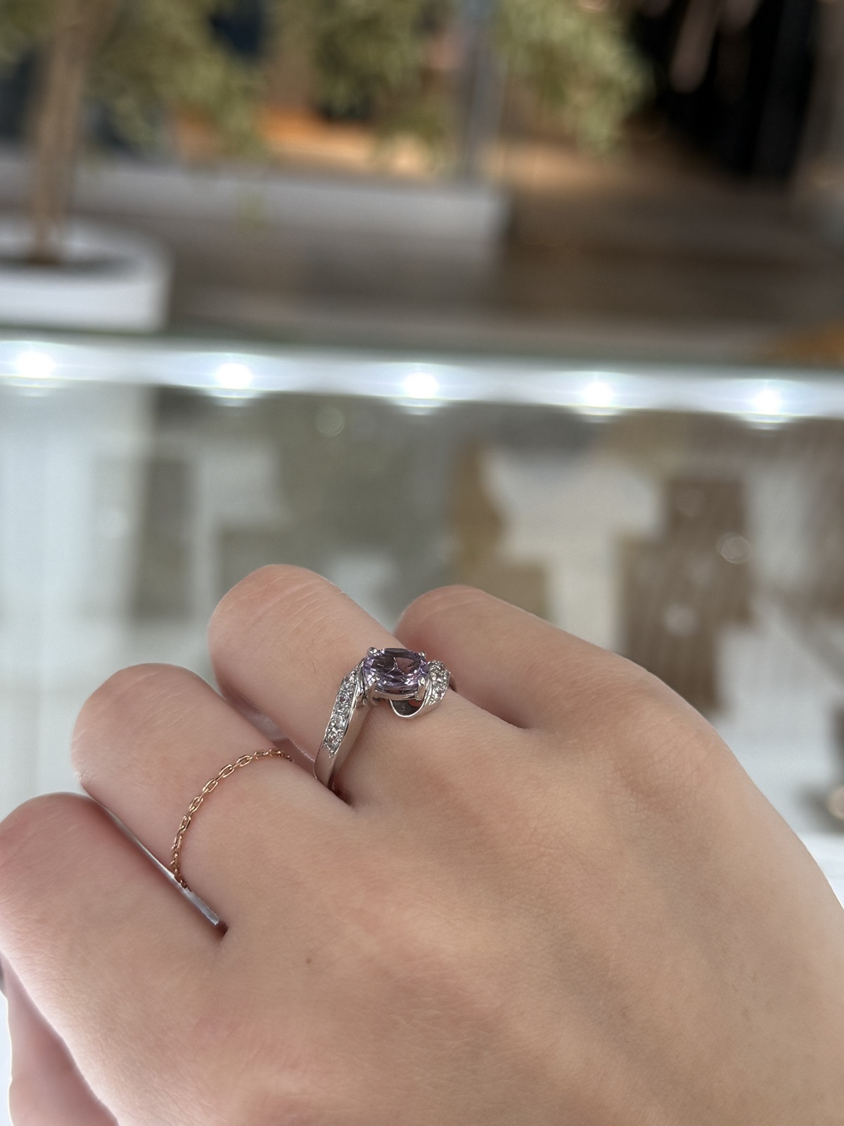 Золота каблучка білого кольору з бузковим аметистом та цирконом 01-200343328