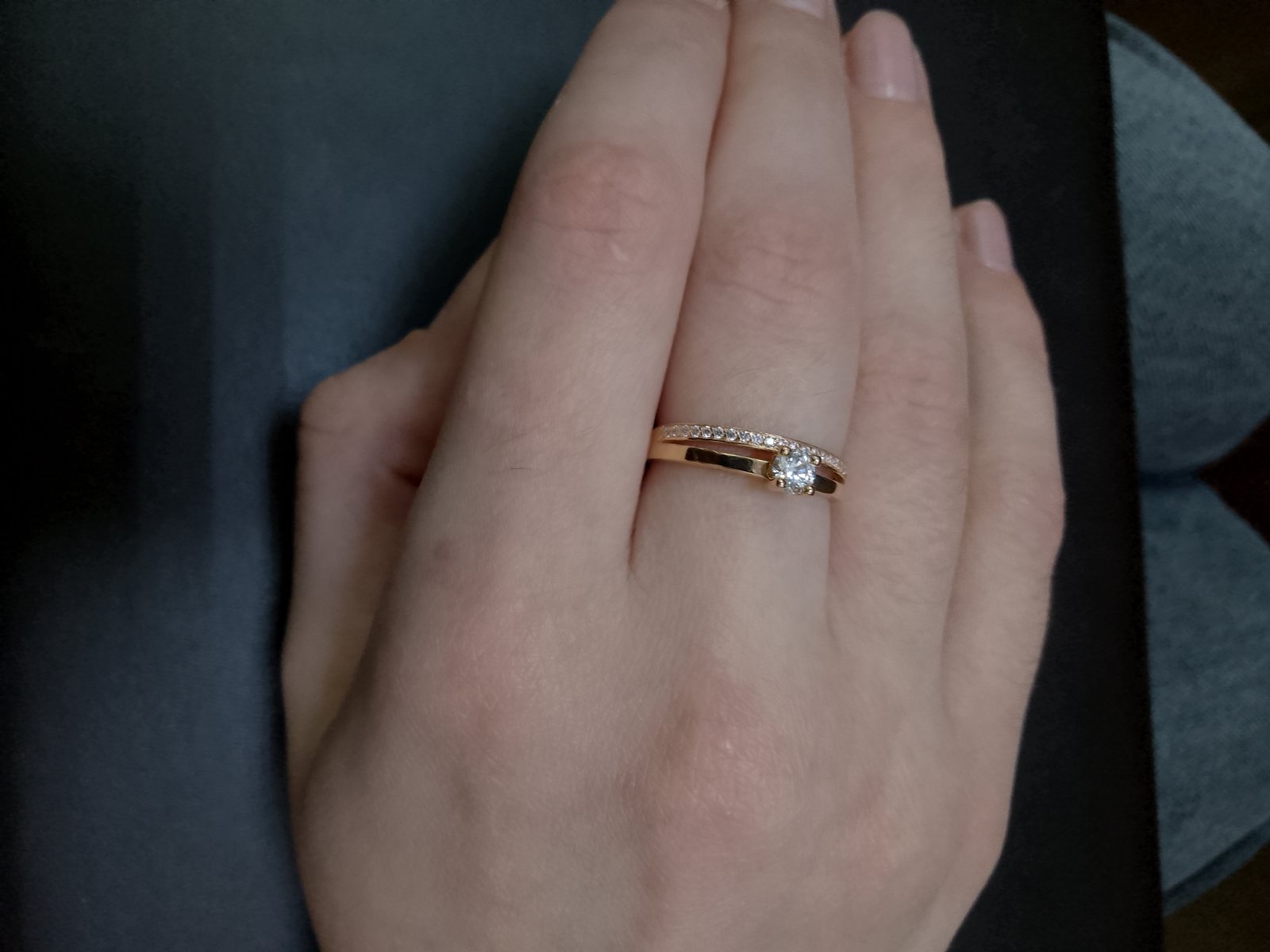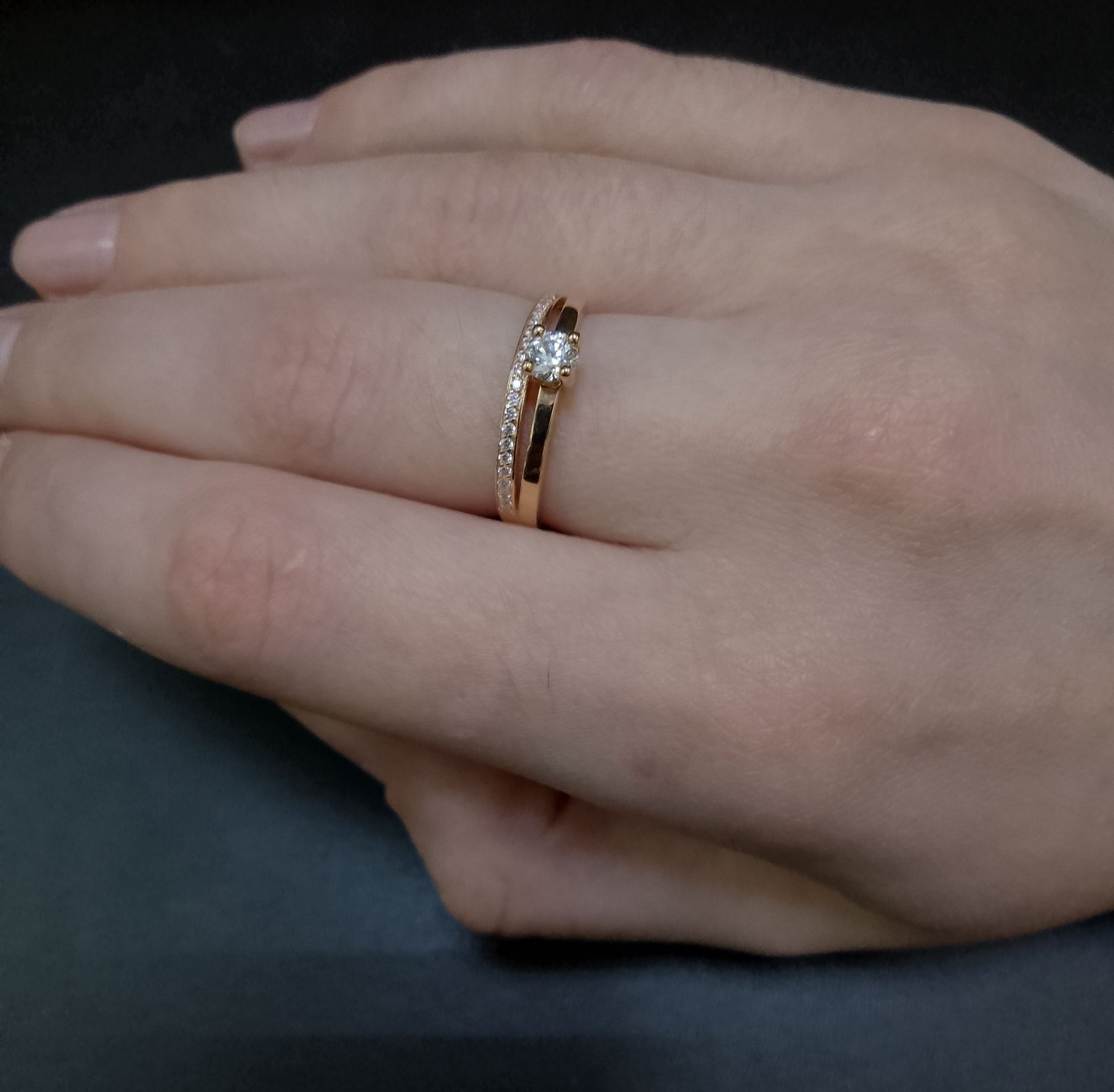 Золота каблучка червоного кольору з цирконом 01-19220768