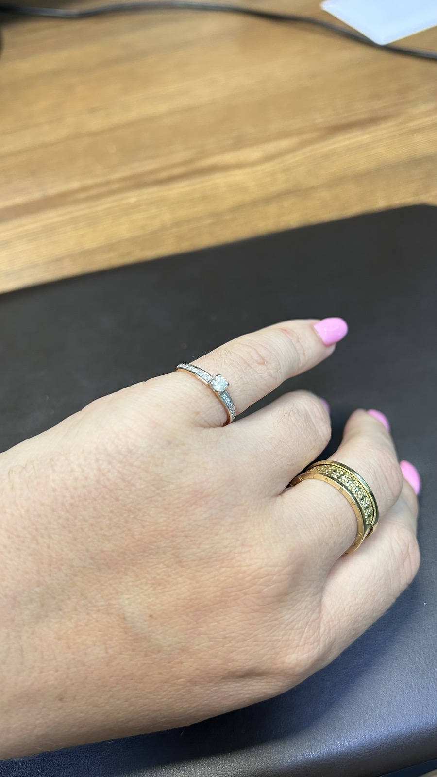 Золота каблучка червоного з білим кольору з жовтими діамантами 01-200555232