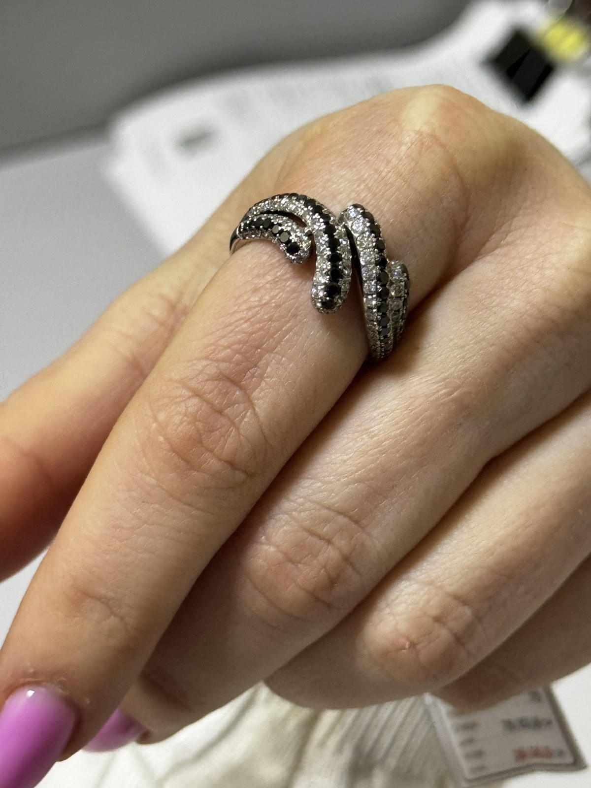 Золота каблучка у білому кольорі з білими діамантами 01-200218083
