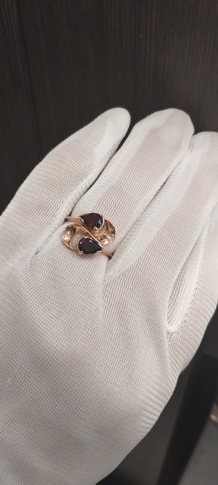 Золота каблучка у червоному кольорі з коричневими гранатами 01-200344097