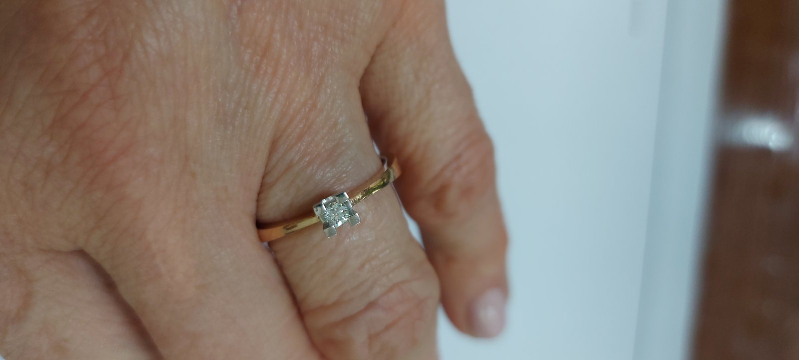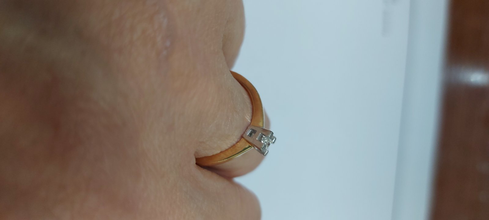 Золота каблучка у червоному з білим кольорі з білим діамантом 01-200743559