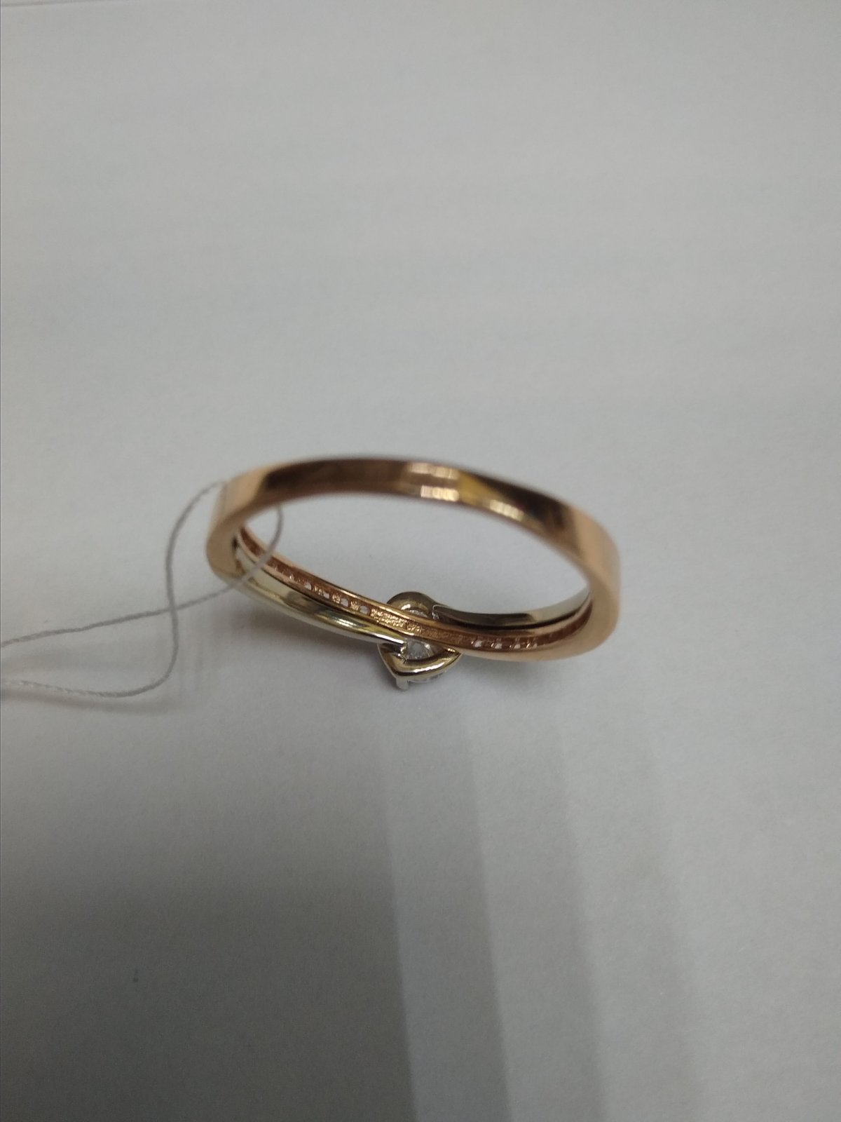 Золота каблучка у червоному з білим кольорі з цирконом 01-200185722