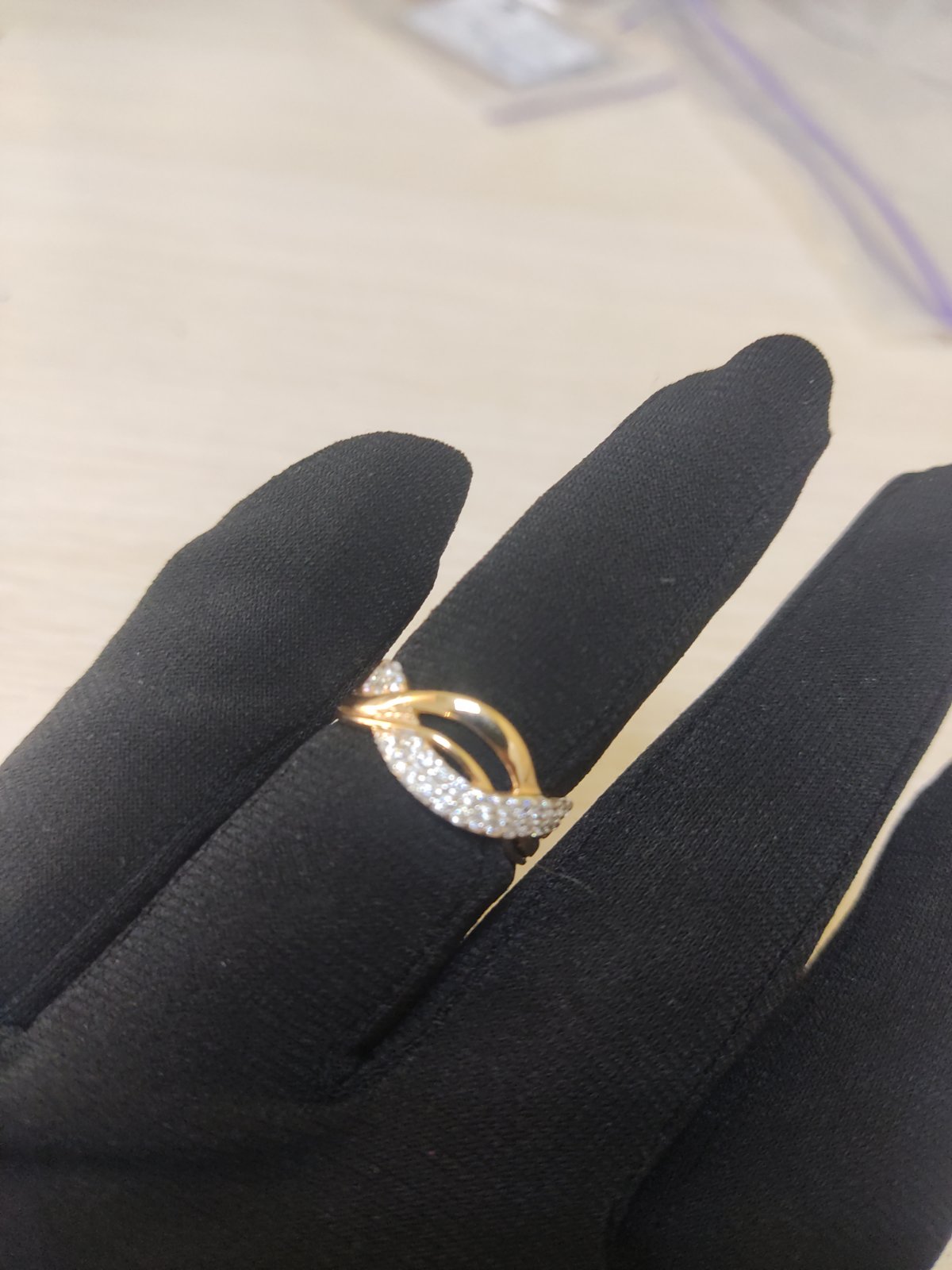 Золота каблучка у червоному з білим кольорі з цирконом 01-200199988