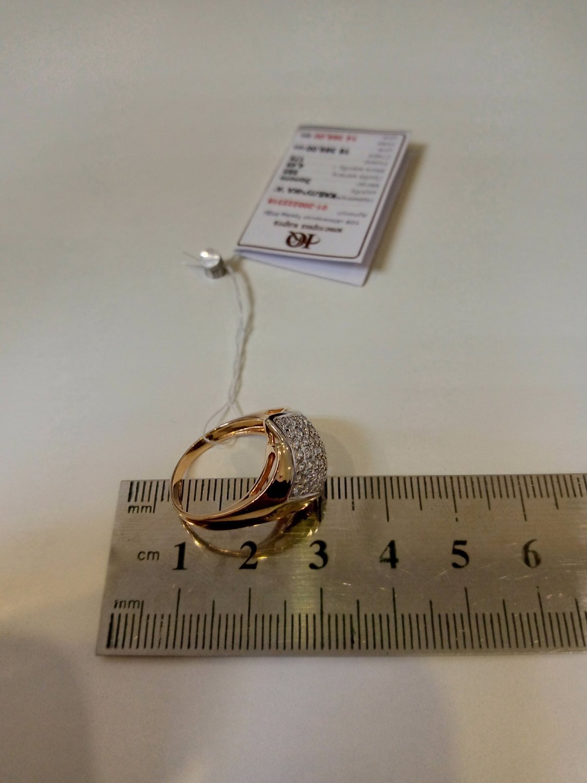 Золота каблучка у червоному з білим кольорі з цирконом «Ромб» 01-200222318