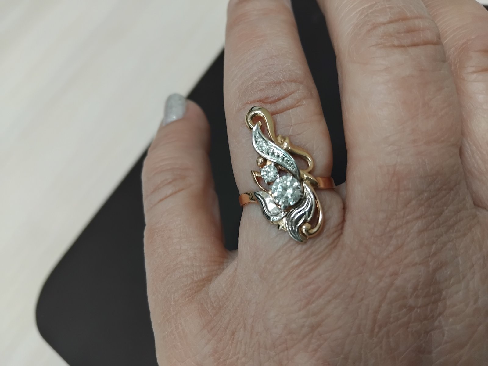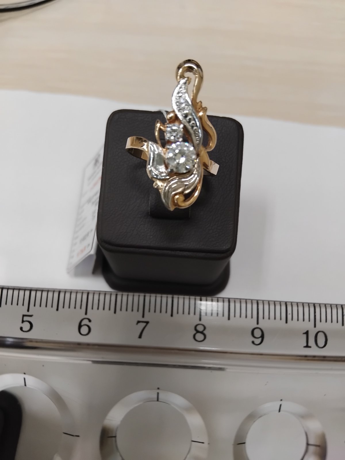 Золота каблучка у червоному з білим кольорі з цирконом 01-200227666