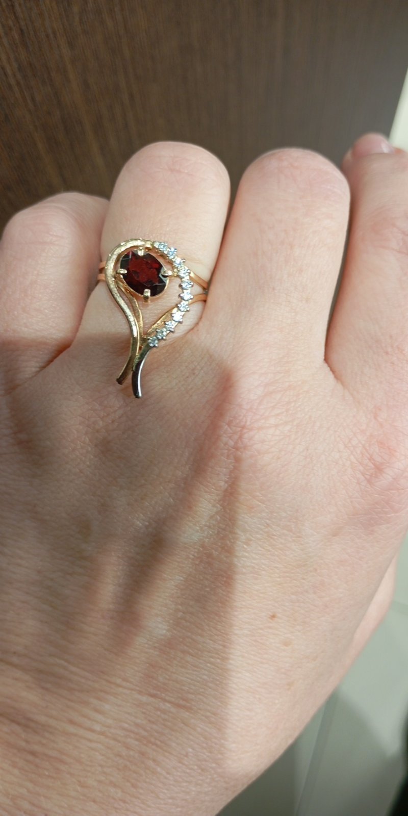 Золота каблучка з коричневим гранатом та цирконом 01-200188724