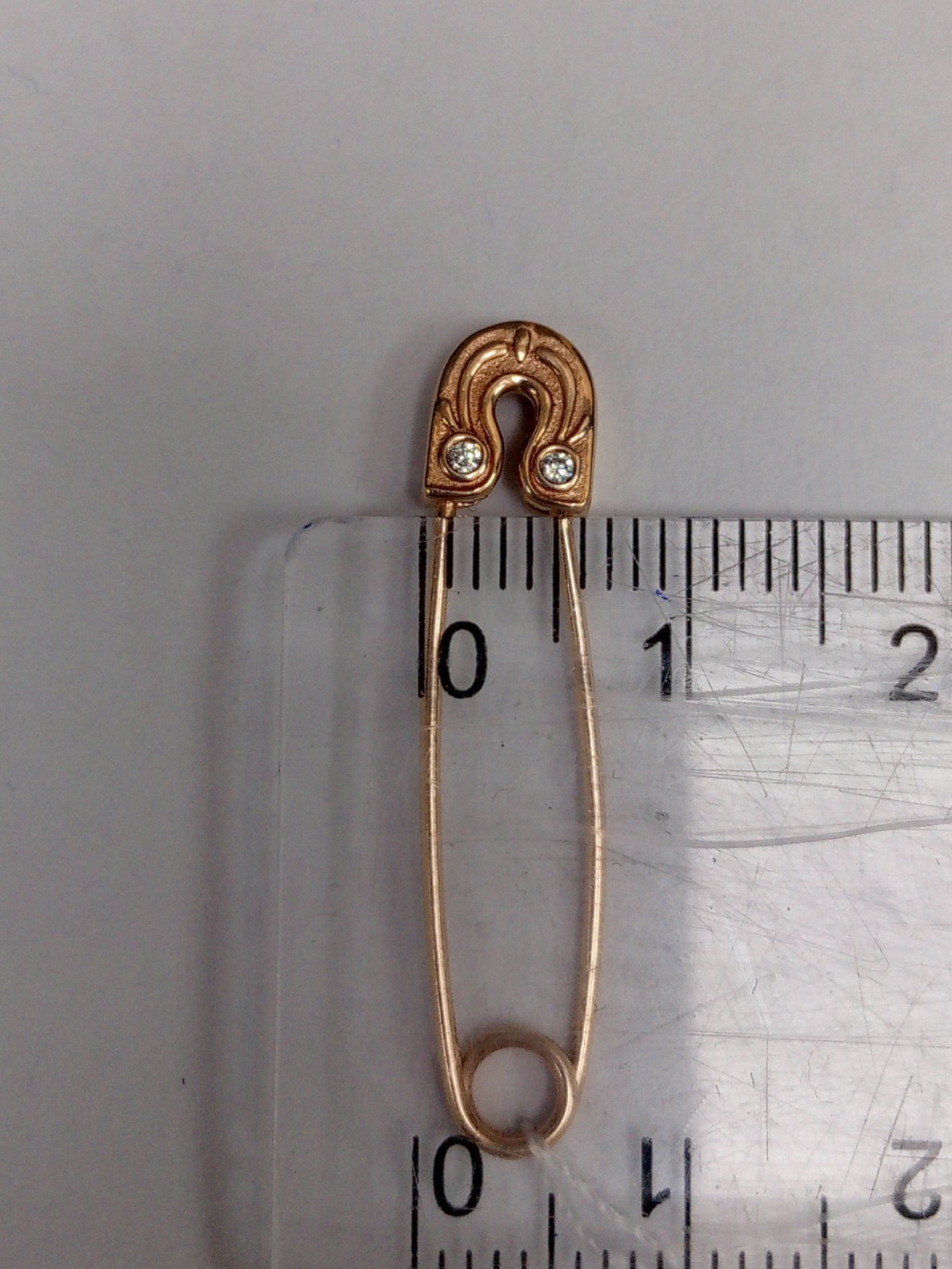 Золота шпилька червоного кольору з цирконом 01-200102738