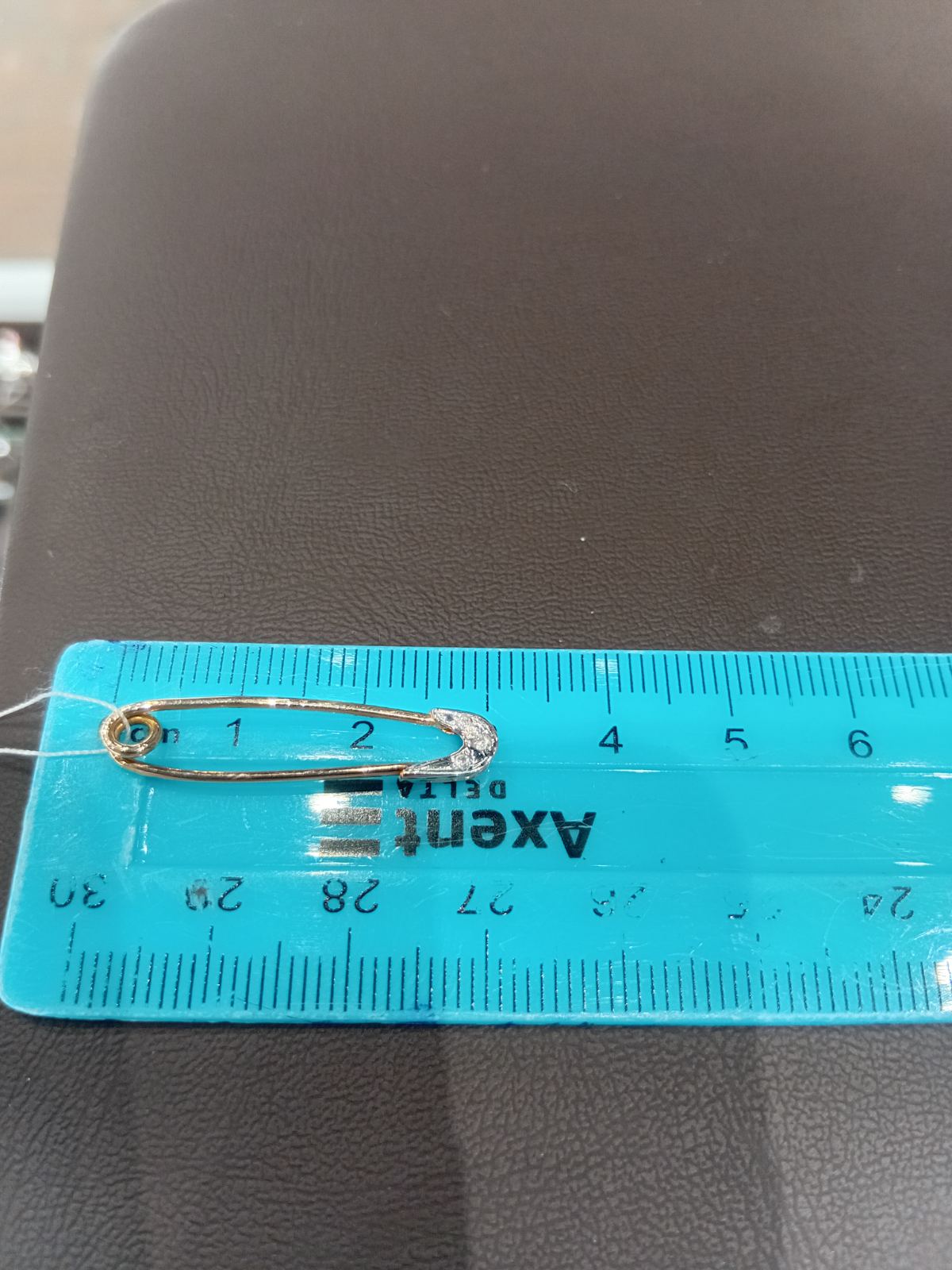 Золота шпилька у червоному з білим кольорі з цирконом 01-19274814
