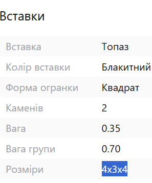 - Вставки Блакитні топази