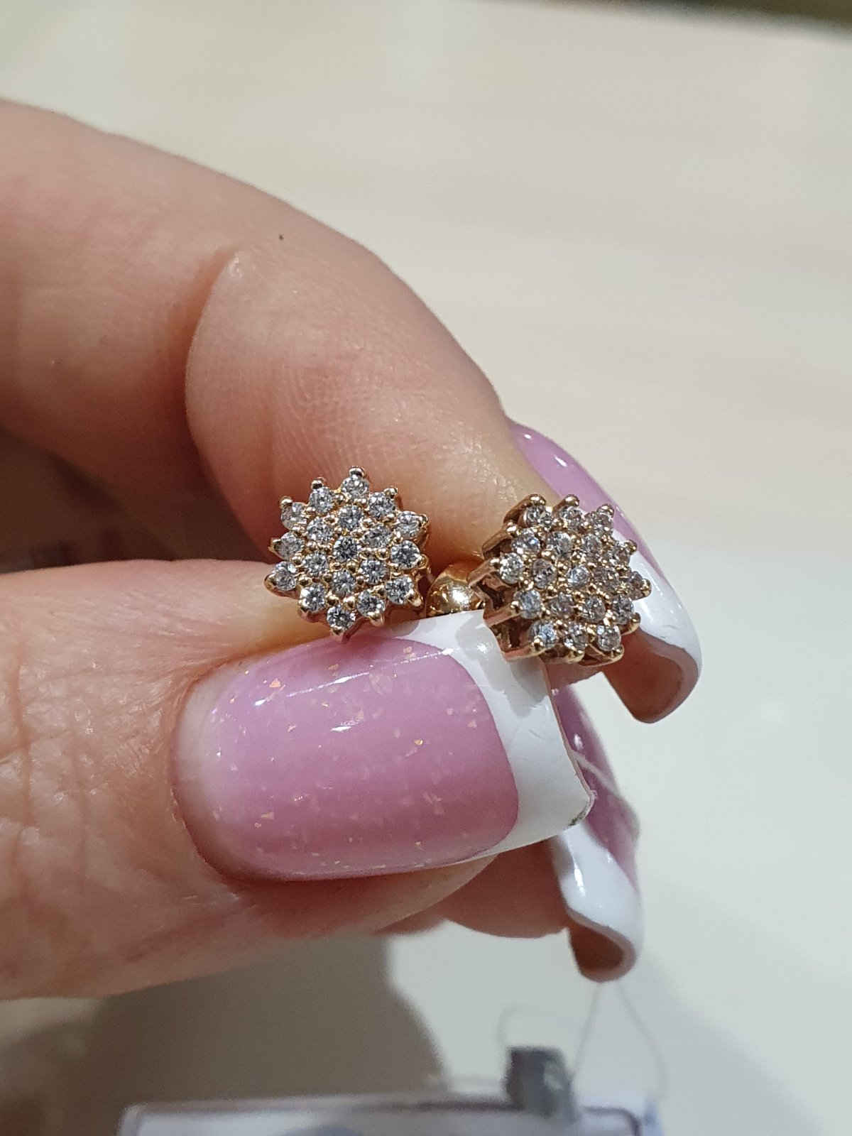 Золоті сережки червоного кольору з цирконом 01-19252492