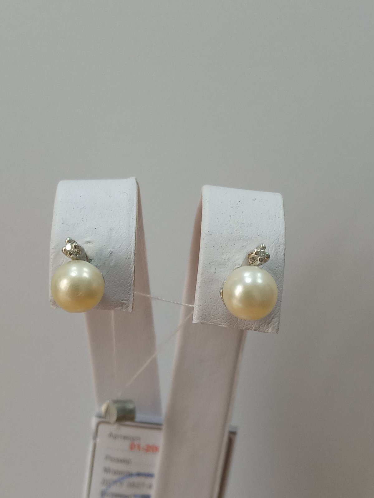 Золоті сережки у білому кольорі з білими діамантами та перлиною 01-200177252