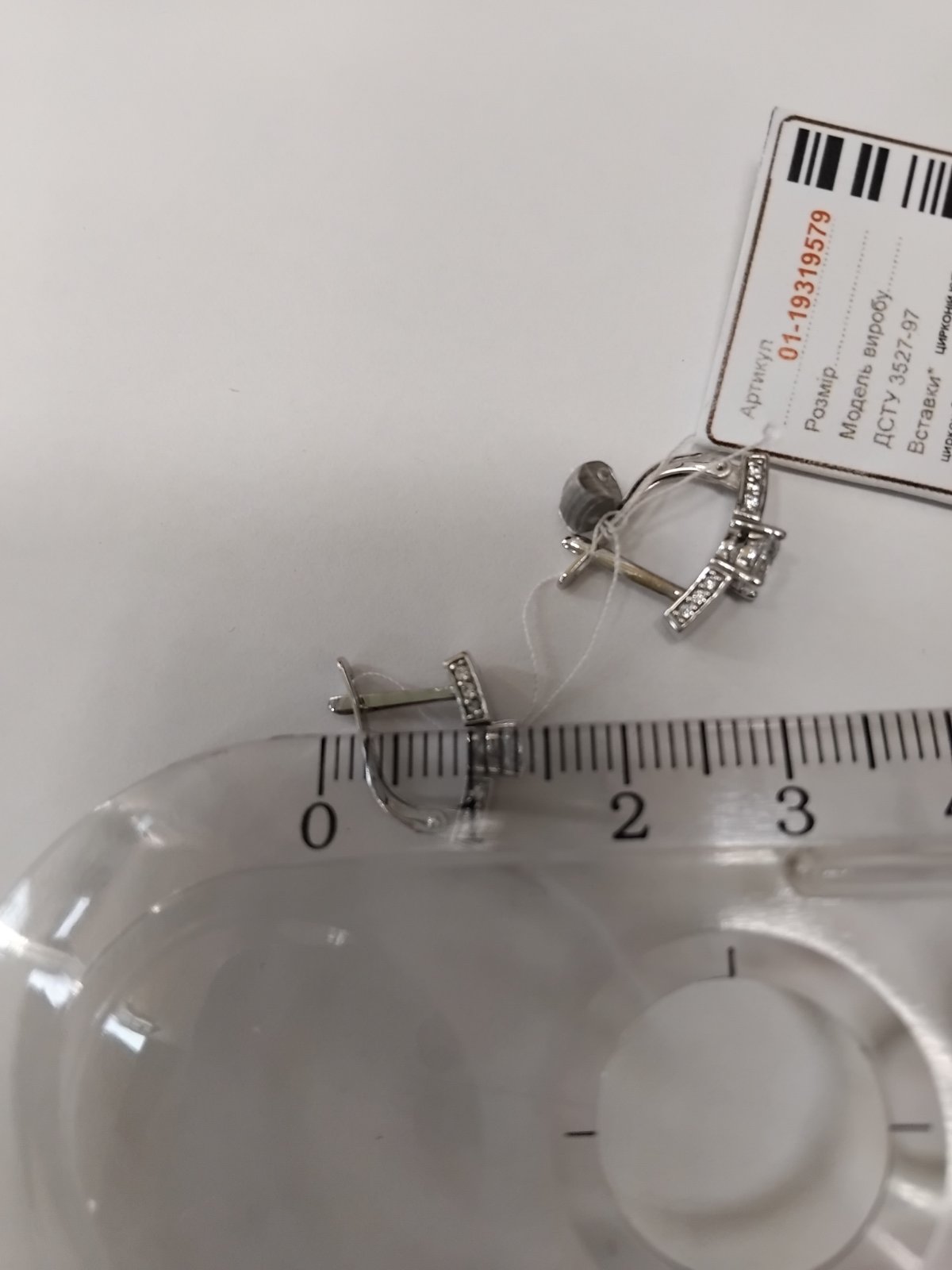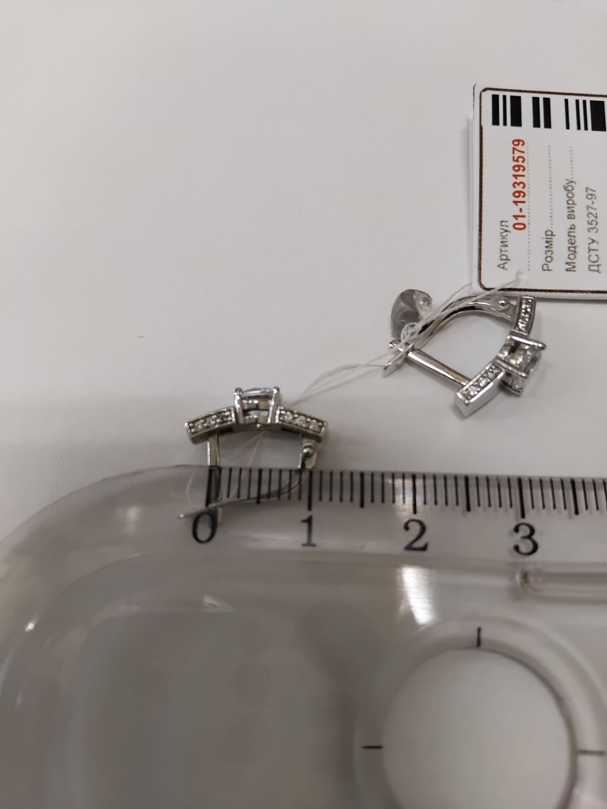 Золоті сережки у білому кольорі з цирконом 01-19319579