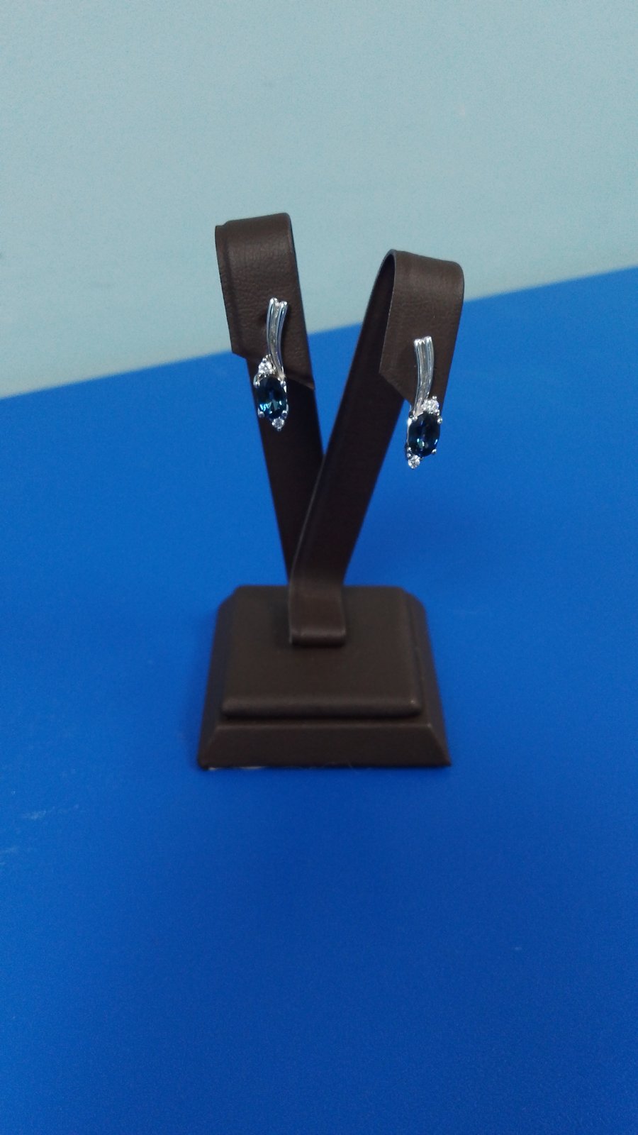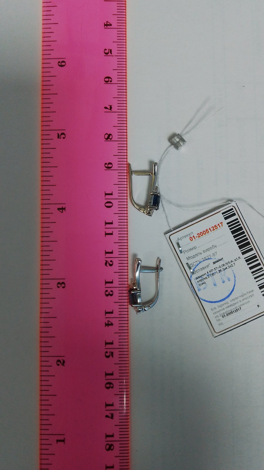 Золоті сережки у білому кольорі з синіми корундами та білими діамантами 01-200512517