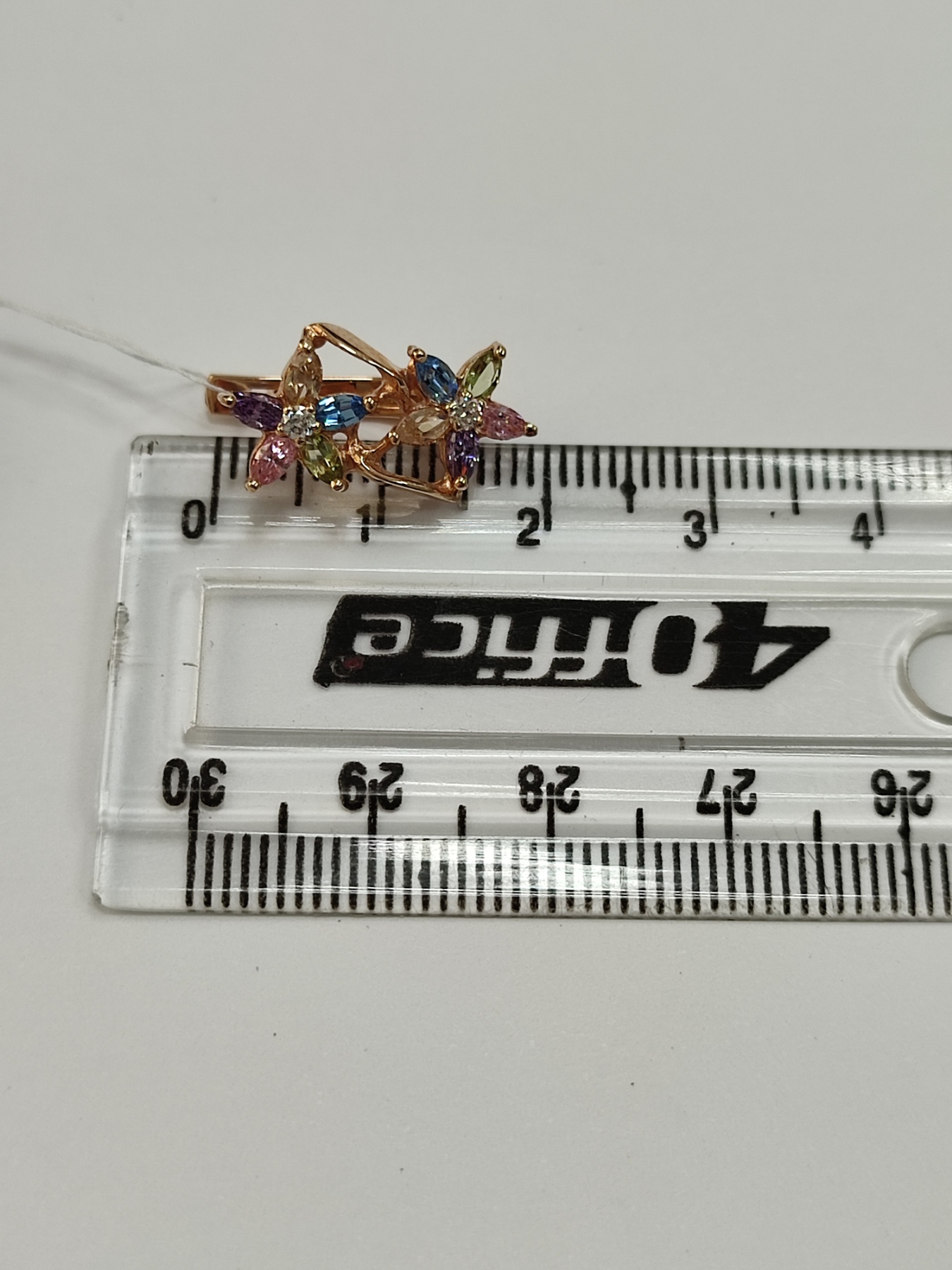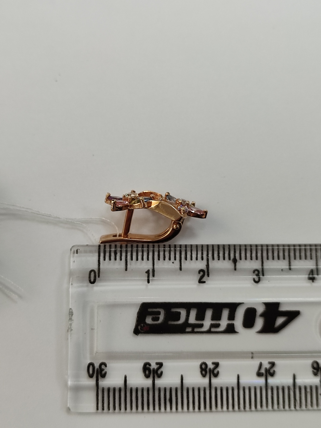 Золоті сережки у червоному кольорі з цирконом «Квіти» 01-19298789