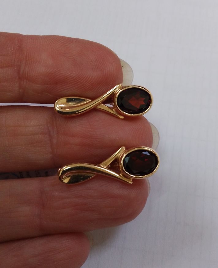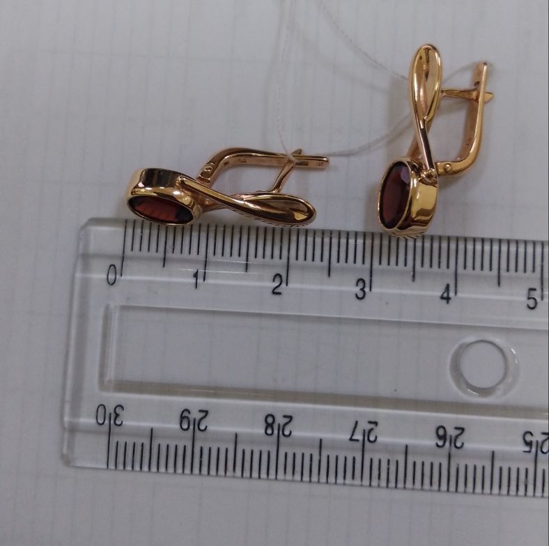 Золоті сережки у червоному кольорі з коричневими гранатами 01-200216676