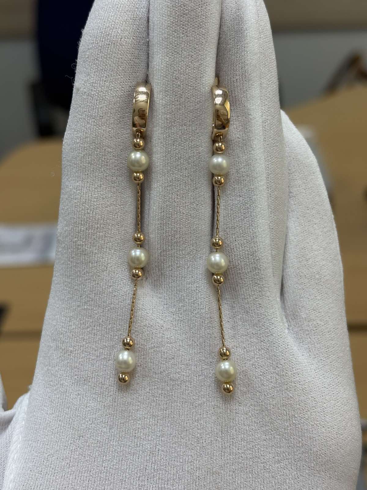 Золоті сережки у червоному кольорі з перлиною 01-200555245