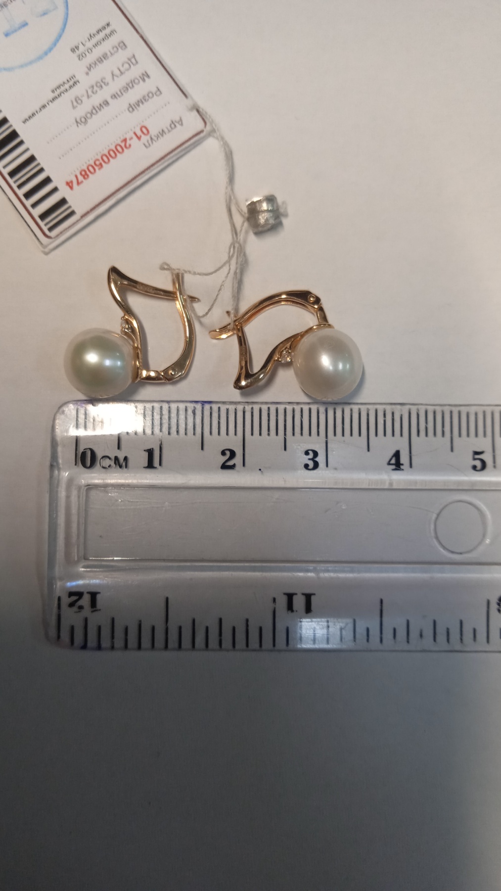 Золоті сережки у червоному кольорі з перлиною та цирконом 01-200050874
