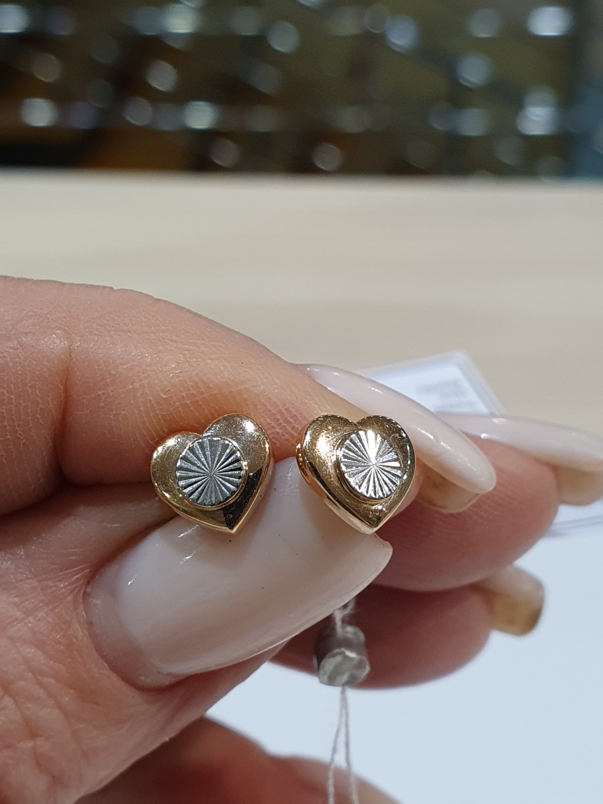 Золоті сережки у червоному з білим кольорі «Серце» 01-200428447