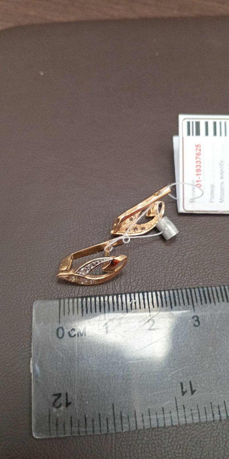 Золоті сережки у червоному з білим кольорі з цирконом 01-19337625