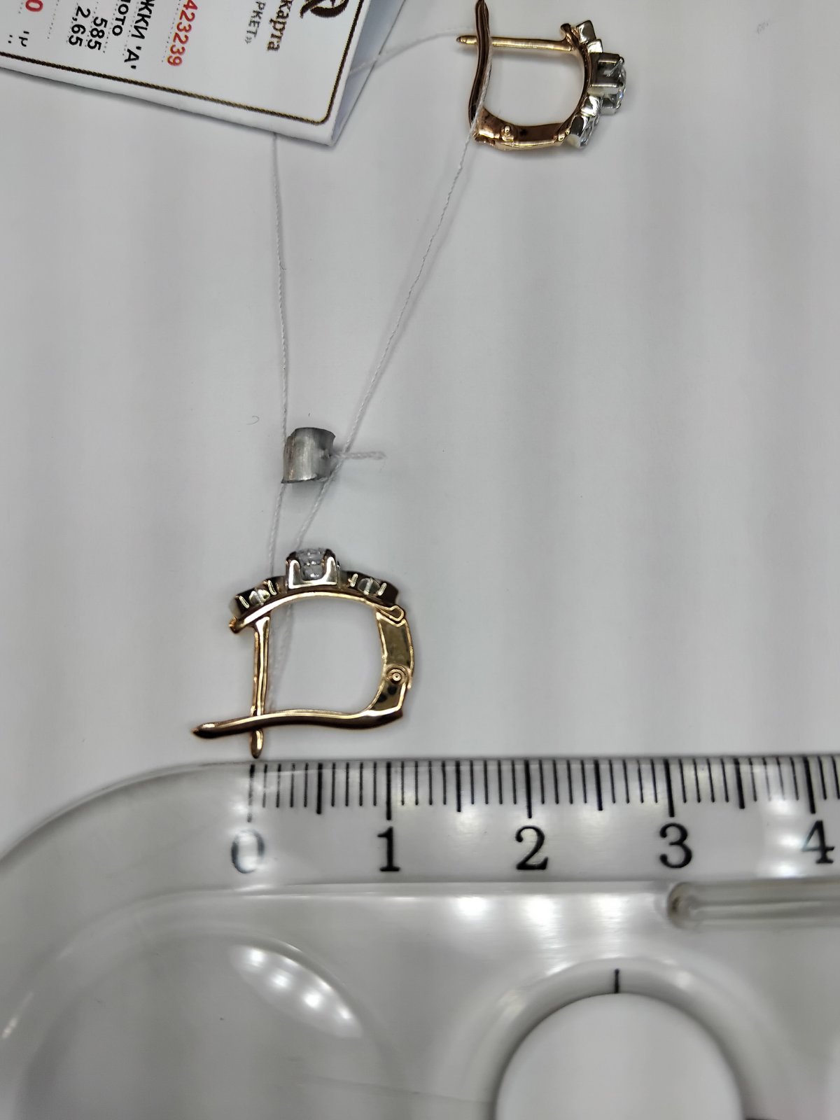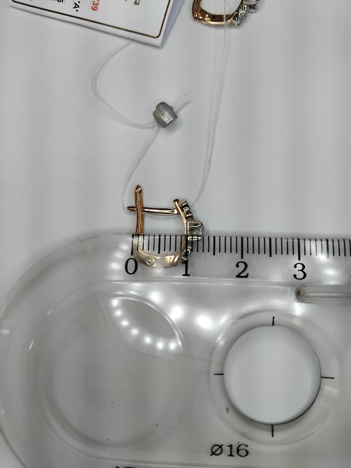 Золоті сережки у червоному з білим кольорі з цирконом 01-200423239
