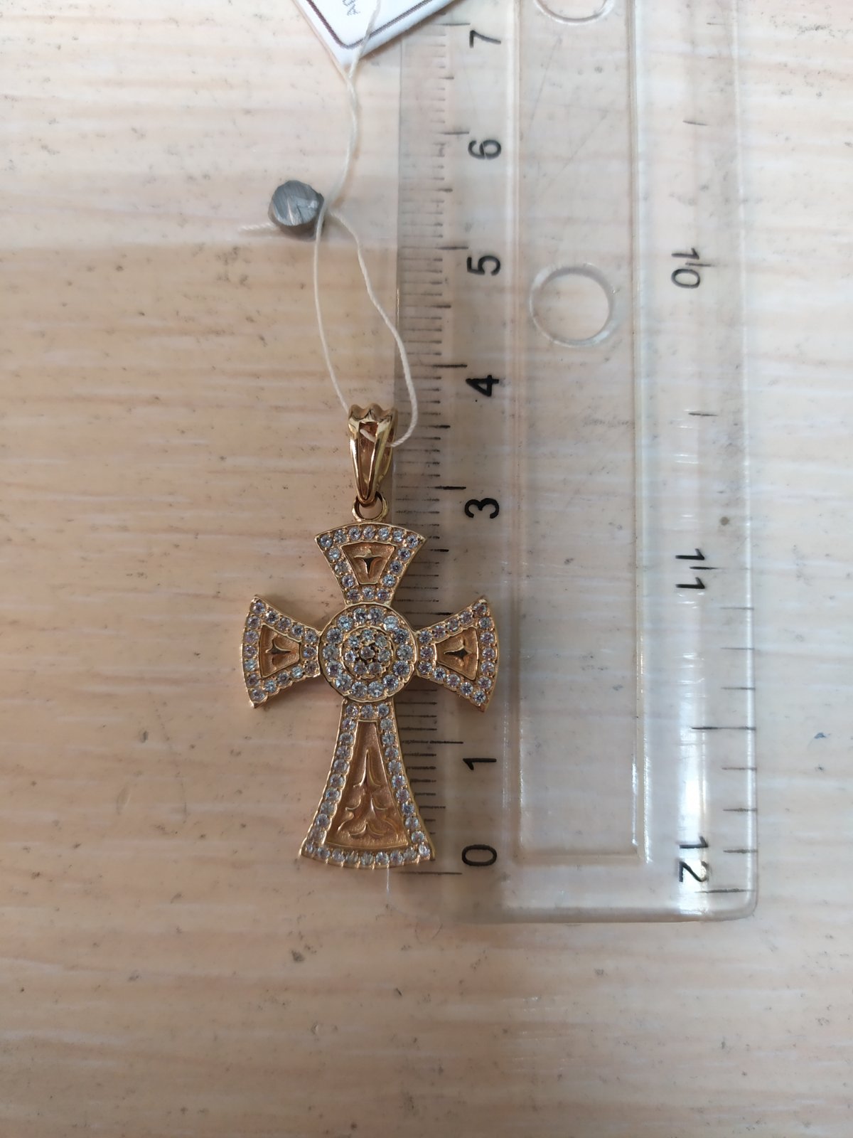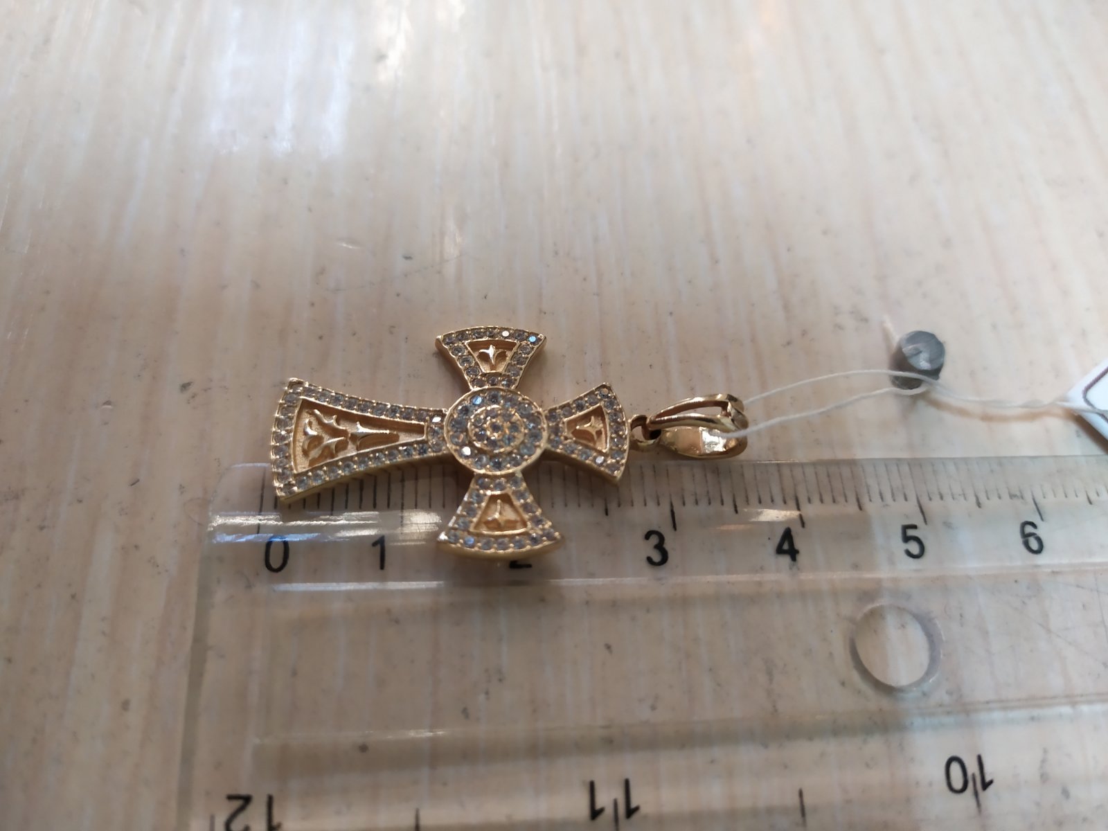 Золотий хрестик червоного кольору з цирконом 01-19180000
