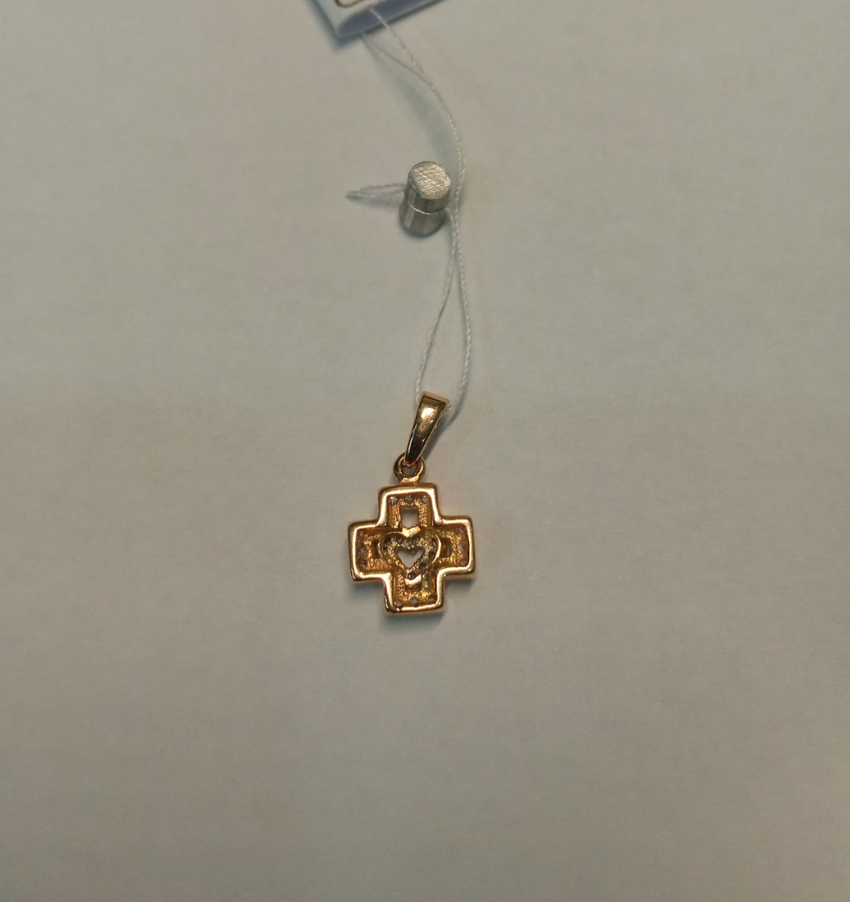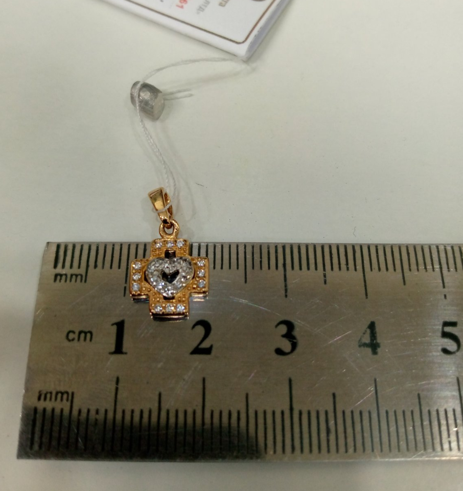 Золотий хрестик червоного з білим кольору з цирконом 01-200122961